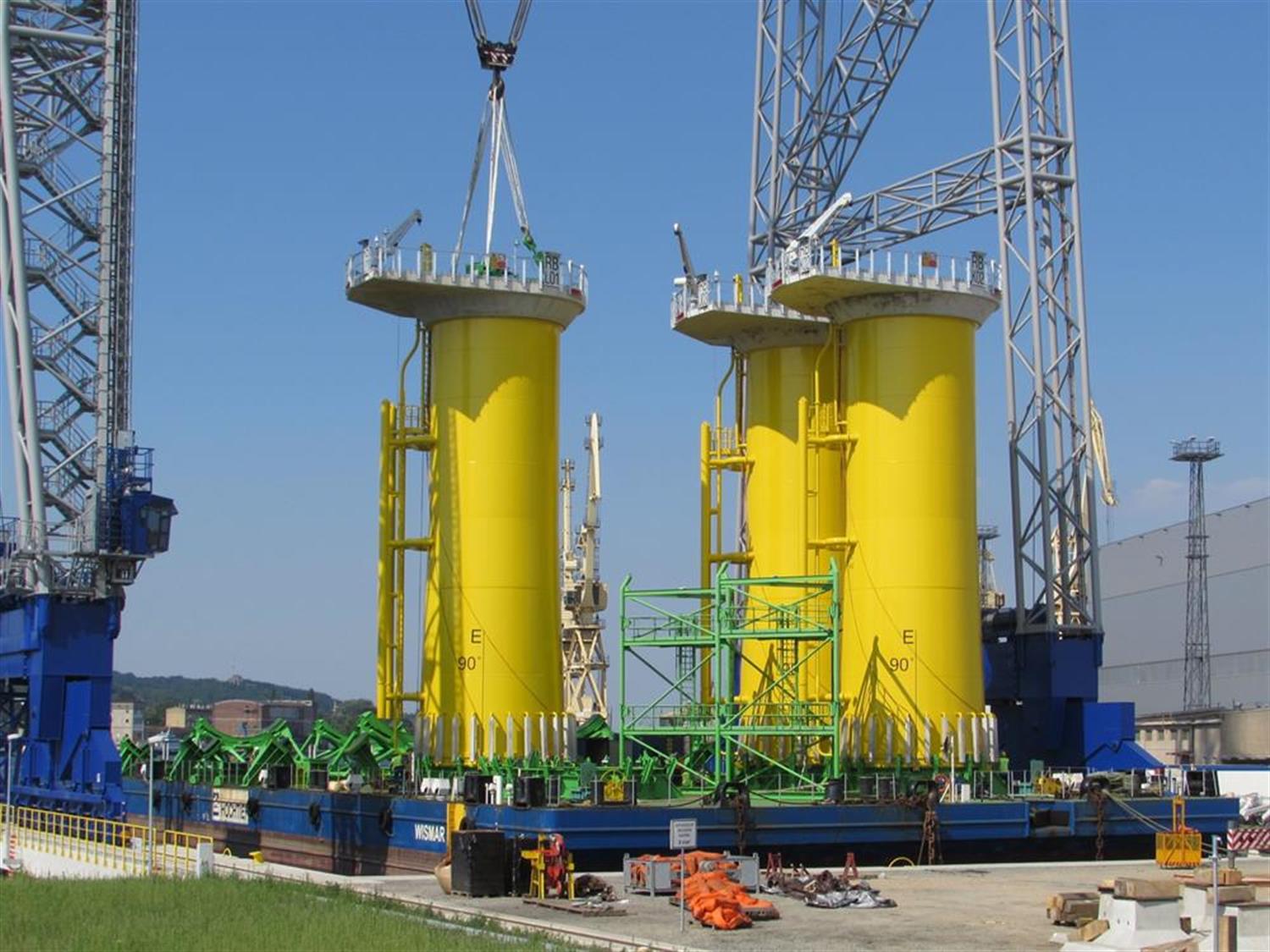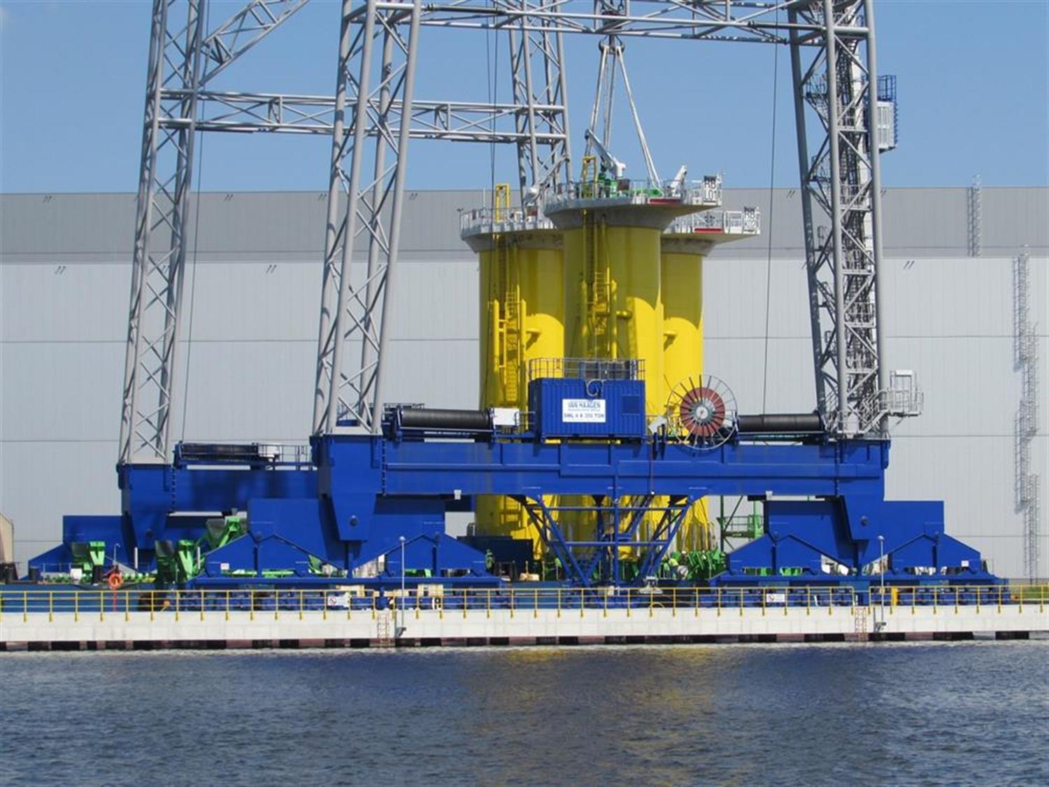 W piątek prowadzono akcję załadunkową. Za pomocą 120-metrowej suwnicy platformy były unoszone, pionowane, przenoszone, a na końcu stawiane na barkę. Jedna konstrukcja waży 344 tony. Platformy popłyną w pozycji pionowej (każda ma wysokość ponad 22 m). Barka wyposażona jest w specjalnie przygotowane "pierścienie". Na nich konstrukcje są usadawiane, a następnie przymocowywane śrubami i specjalnymi zapięciami, bez konieczności spawania. Wykonuje to wykwalifikowana grupa monterów.