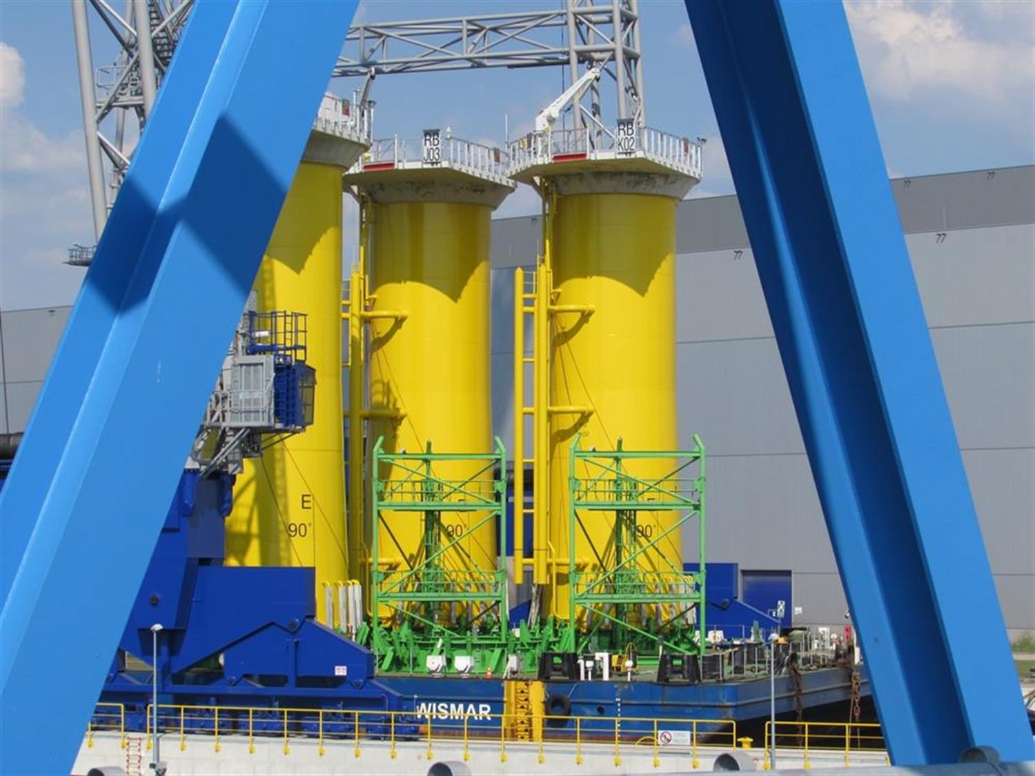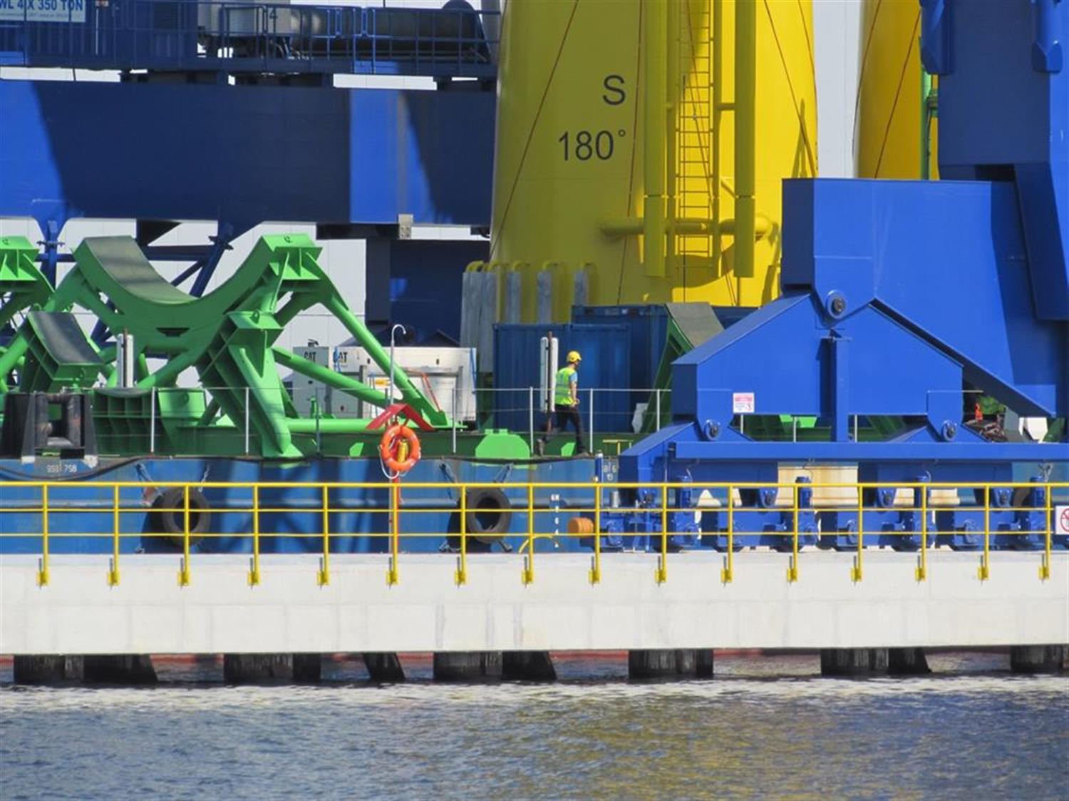 Od godz. 6 rano w piątek (24 czerwca) trwały przygotowania do załadunku tzw. platform pośrednich, wyprodukowanych w zakładzie Bilfinger Mars Offshore (BMO) na Ostrowie Brdowskim w Szczecinie. To pierwszy taki transport. Cztery konstrukcje na specjalistycznej barce "Wismar" mają odpłynąć w sobotę w południe.