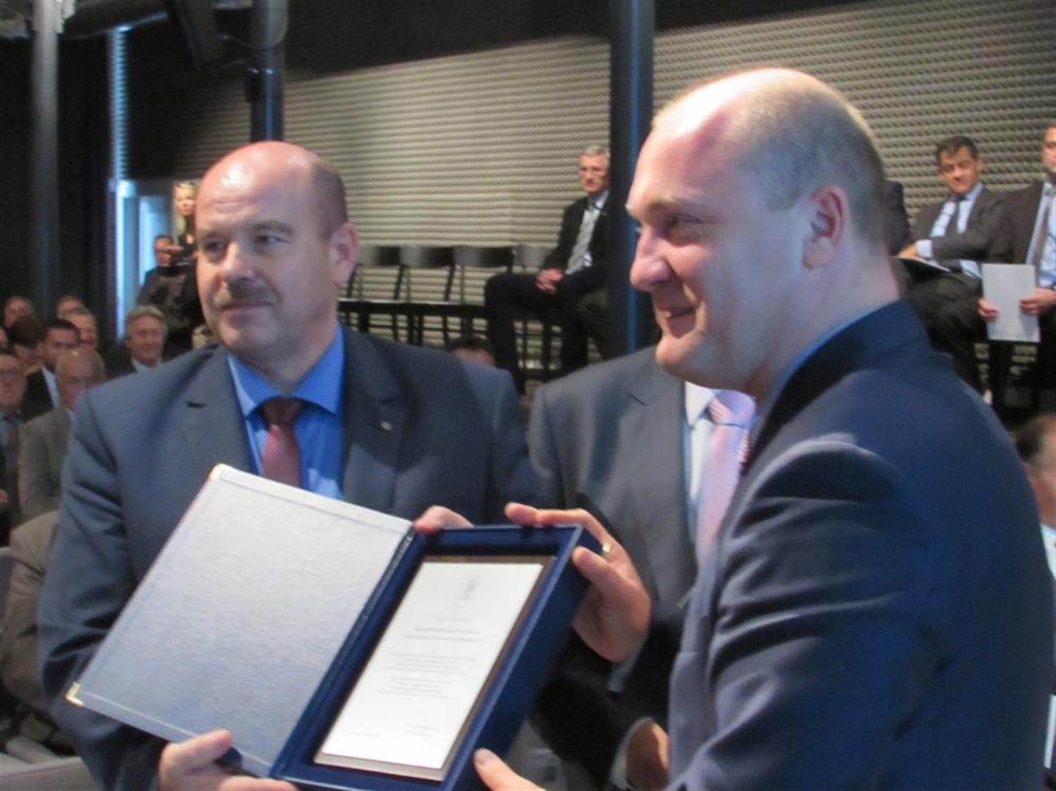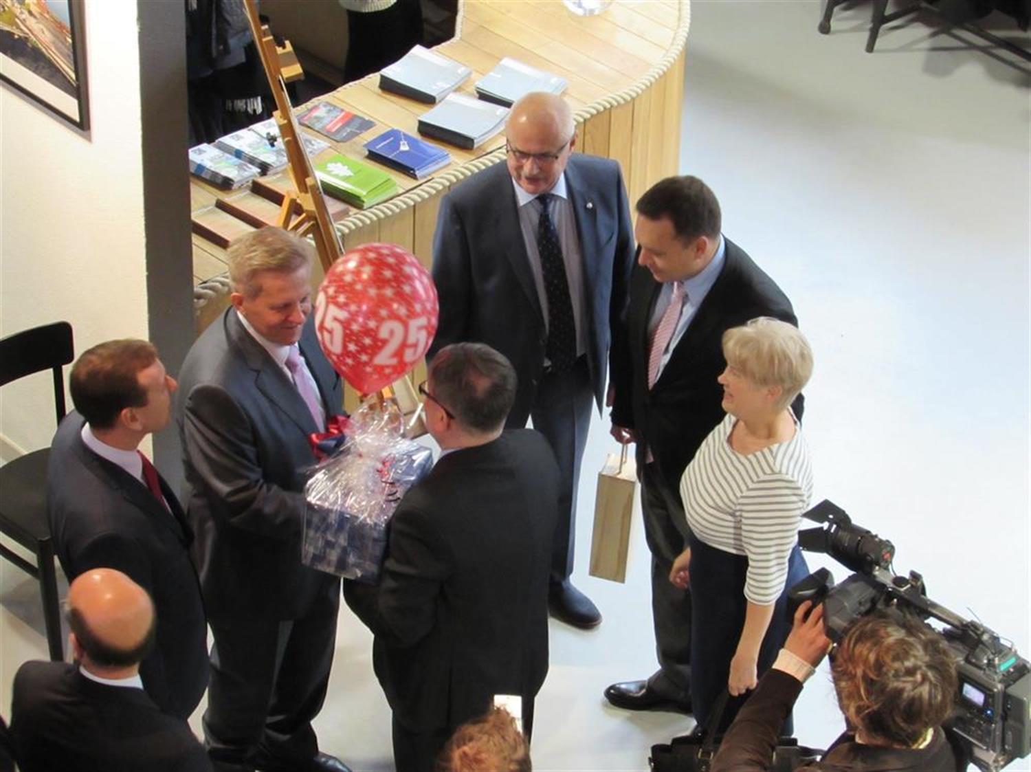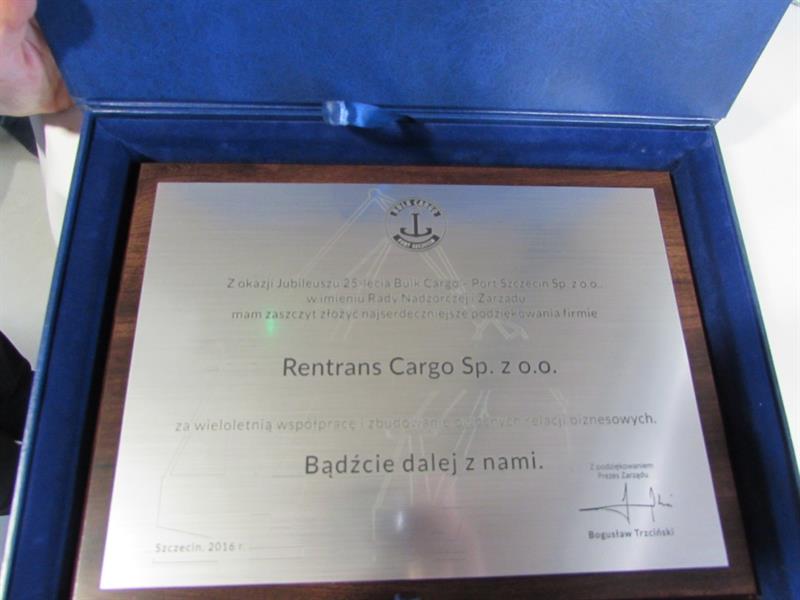 Prezes Bulk Cargo Bogusław Trzciński szefom kilku największych kontrahentów spółki wręczył pamiątkowe wyróżnienia z napisem: „Bądźcie dalej z nami”.