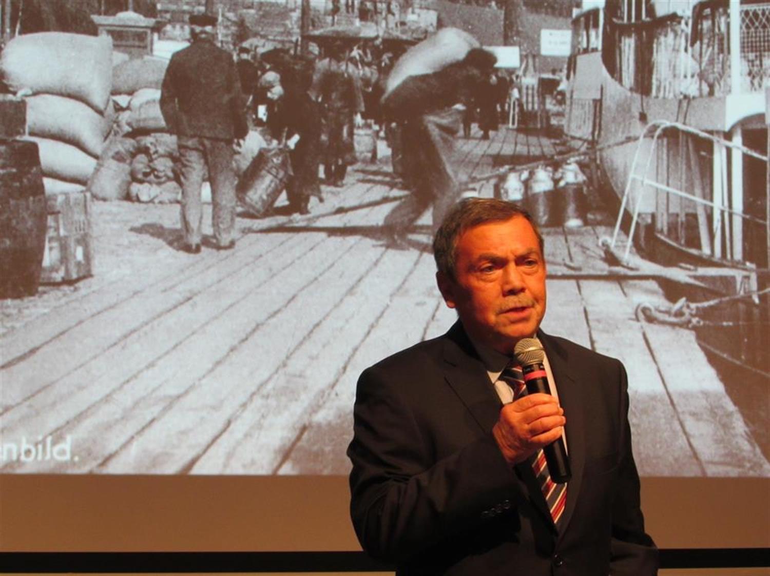 Historię Basenu Górniczego przybliżyli Roman Czejarek i Jan Dębski, szef fundacji „Moja Łasztownia”. Mówili też o roli całego portu szczecińskiego, prezentując dawne zdjęcia i mapy. Tworzą one czasową wystawę w Starej Rzeźni.