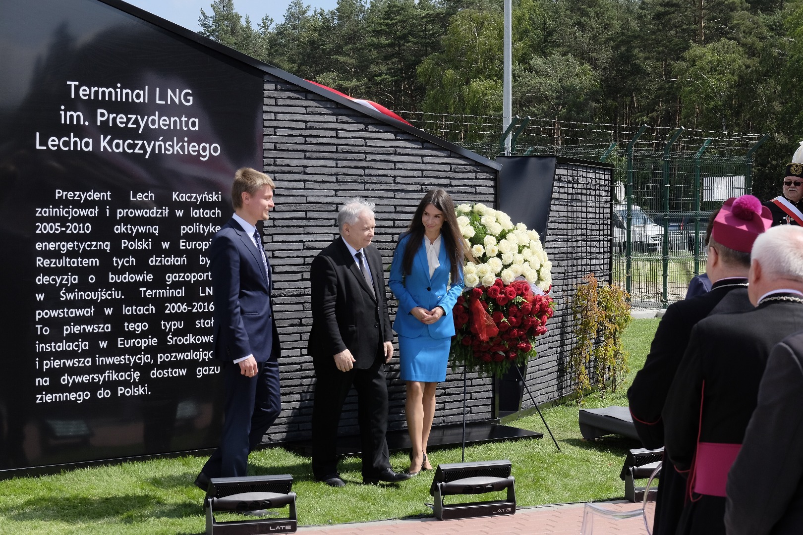 Pamiątkową tablicę odsłonili prezes PiS Jarosław Kaczyński, córka zmarłego prezydenta Marta Kaczyńska oraz prezes spółki Gaz-System Tomasz Stępień.