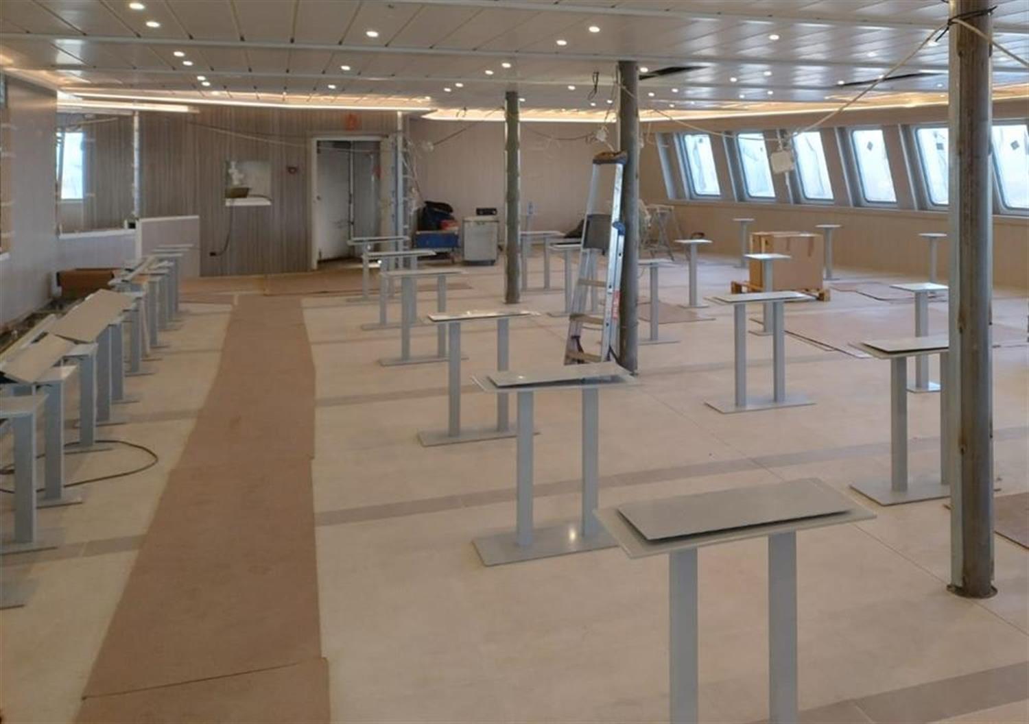– Obecnie trwa wykańczanie przestrzeni pasażerskich i załogowych – poinformował Michał Arciszewski, rzecznik prasowy PŻB. – Montowane są podłogi i panele sufitowe oraz wyposażane przestrzenie sanitarne. Trwają testy oświetlenia. Zainstalowano sprzęty kuchenne, chłodnie do przechowywania jedzenia. W przestrzeniach pasażerskich instalowane są sofy, stoliki i krzesła. Prowadzone są ostatnie prace nad wyposażeniem i okablowaniem statku w kamery CCTV, System TV, sieć LAN oraz łącza internetowe. Prom w każdy rejs będzie mógł zabrać do 920 pasażerów i 60 członków załogi.