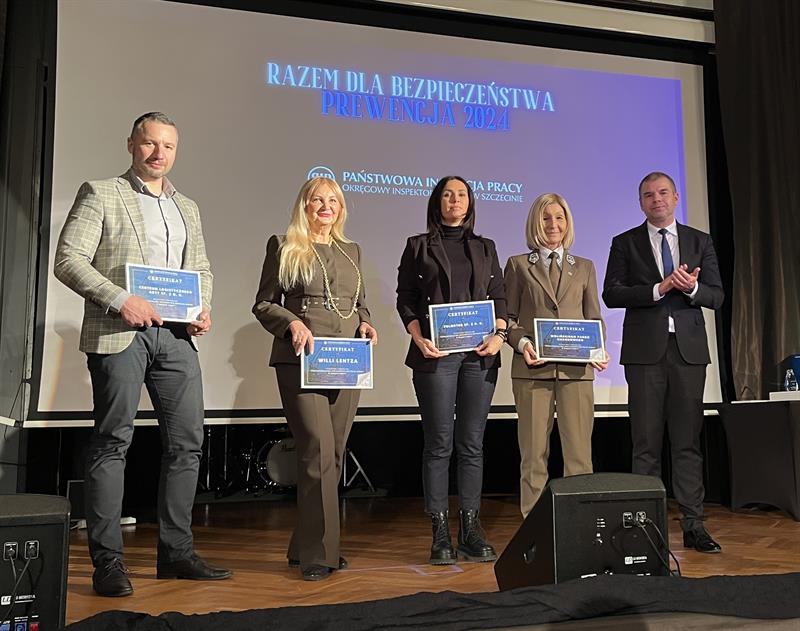 Laureatami programu „Efektywne zarządzanie ryzykiem zawodowym”, którego istotnym elementem są szkolenia przeznaczone dla pracodawców, zostały szczecińskie firmy: Galship Marek Gałka, Zakład Usługowo-Produkcyjno-Handlowy „Pomorze", PM SERVICES POLAND, ALFA Logistics Michał Skierś, Maciej Świeściak. Dyplomy powędrowały także do firm, zakładów, spółek i instytucji z regionu: Nolato ze Stargardu, PAULA SPA z Pobierowa, Winnicy Turnau z Baniewic, Zakładu Komunikacji Miejskiej z Białogardu, Szkoły Podstawowowej nr 3 im. Bolesława Krzywoustego w Białogardzie, Młodzieżowego Ośrodka Wychowawczego w Podborsku, Restauracji „Petrico" z Krzywopłotów, Magdy Wieruckiej z Firmy Handlowo-Usługowa „Grey” z Międzyzdrojów oraz do Marty Deji ze Stylizacji Paznokci ze Świnoujścia.