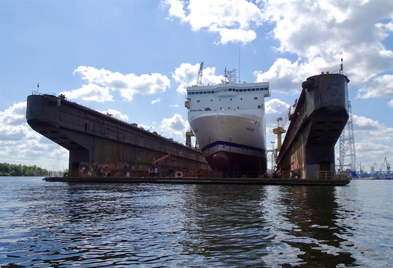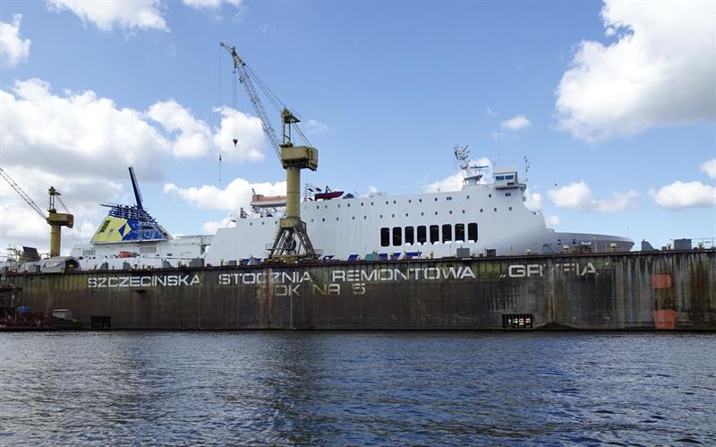 – Prace na doku nr 5 w MSR „Gryfia” idą pełną parą – poinformował armator w mediach społecznościowych. – Prom przechodzi remont klasowy pośredni, w ramach którego odbywa się przegląd podwodnej części kadłuba oraz jego malowanie. Przewidziano również okresowy remont elektrowni statkowej i innych urządzeń. Odmalowane również zostaną pokłady samochodowe.