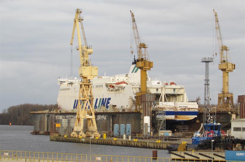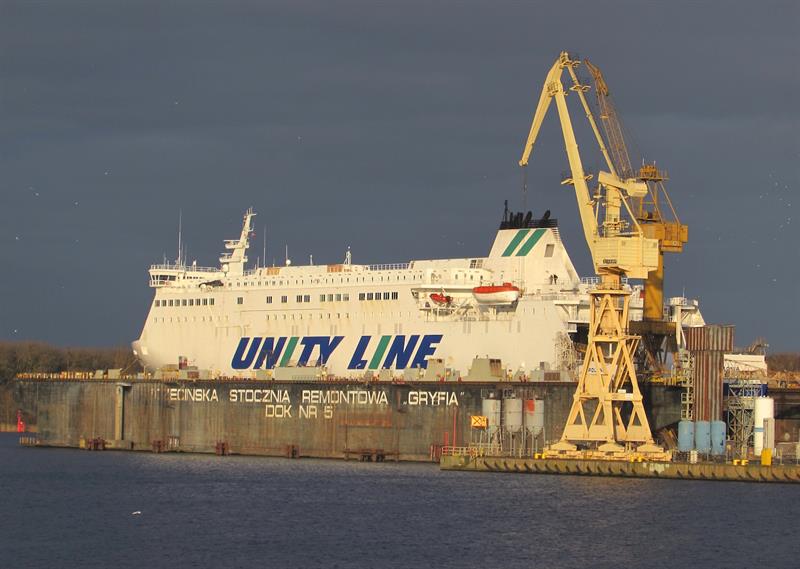 Po udanym niedawnym remoncie „Skanii” kolejny pływający w barwach Unity Line (spółki z Grupy Polskiej Żeglugi Morskiej) prom trafił do Morskiej Stoczni Remontowej „Gryfia” w Szczecinie – na dok nr 5. „Polonia”, bo o niej mowa, dotarła tu 17 lutego. Podobnie jak „Skania” przechodzi standardowy remont dokowy. Prace obejmują konserwację kadłuba, przegląd systemu napędowego (śruby, sterów strumieniowych i zwykłego steru), przegląd sprzętu ratunkowego i przeciwpożarowego, a także – co ważne – przystosowanie statku do przepisów tzw. konwencji balastowej, czyli zainstalowanie systemu uzdatniania wód balastowych. Unity Line informuje, że powrót „Polonii” do serwisu planowany jest na 5 marca, z odejściem ze Świnoujścia do Ystad o godz. 13.