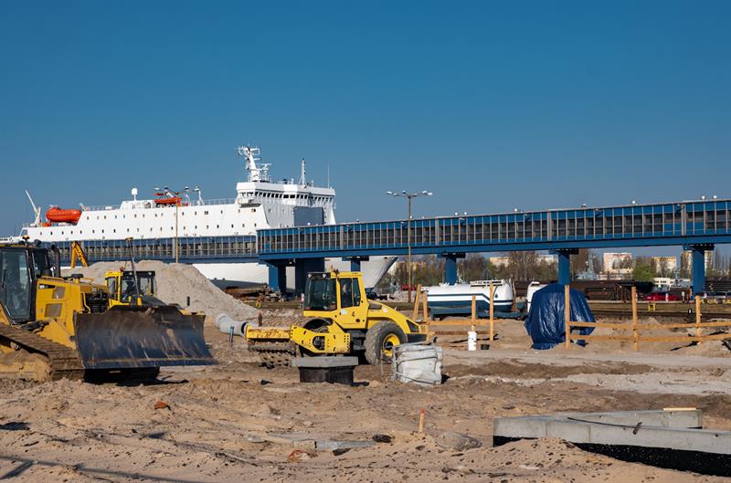 Terminal promowy w Świnoujściu jest przygotowywany do obsługi transportu intermodalnego, czyli przewozu ładunków, np. w kontenerach, z wykorzystaniem różnych rodzajów transportu, ale bez przeładunku samego towaru na całej trasie. Prace budowlane idą zgodnie z założonym harmonogramem.