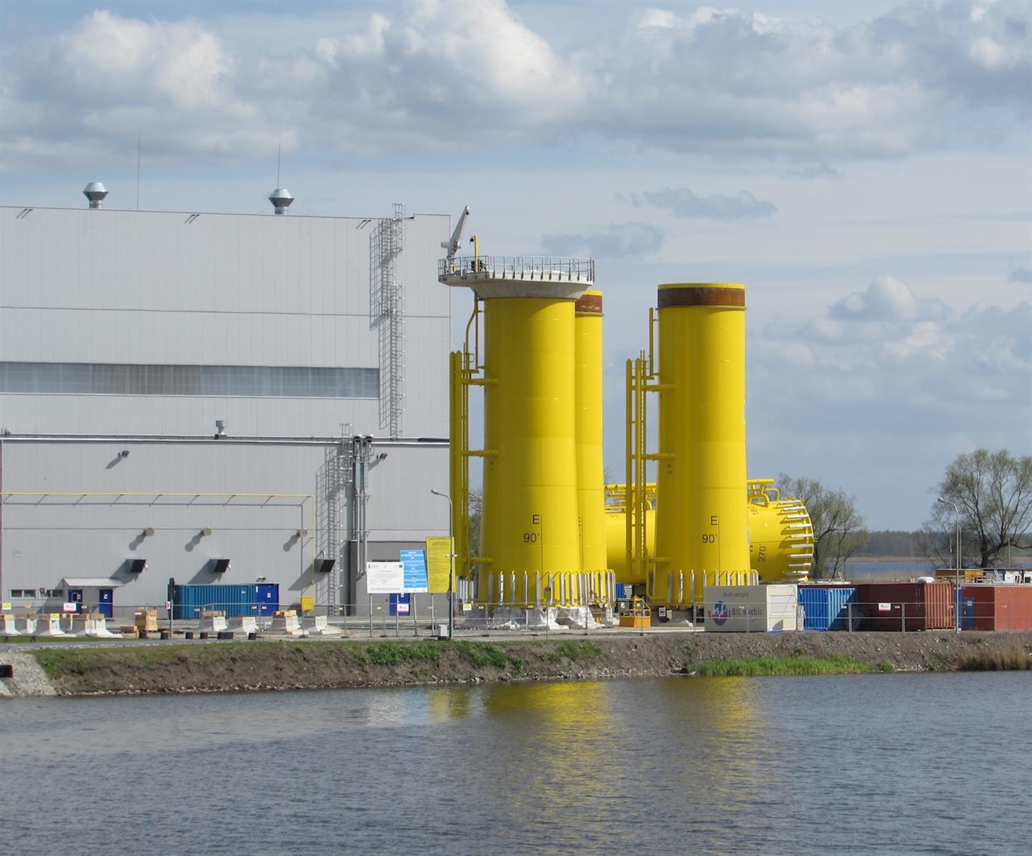 W halach fabryki BMO trwa produkcja fundamentów morskich elektrowni wiatrowych, a tuż obok wykonano prace dotyczące ekologicznego zagospodarowania terenu.