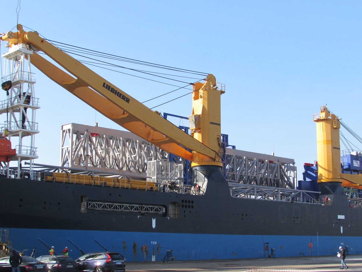 Wyprodukowana w Holandii suwnica przypłynęła do Szczecina w ośmiu częściach ważących od 80 do 340 ton oraz kilku mniejszych. Całkowity ich ciężar to ok. 1500 ton. Transport odbył się statkiem "Combi Dock III", przeznaczonym do przewozu ciężkich ładunków. Jego nośność to 10 608 ton. W sobotę przed południem zacumował przy nabrzeżu Kaszubskim.