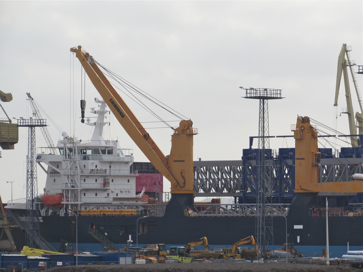 Części suwnicy będą teraz przenoszone ze statku na plac składowy fabryki BMO, m.in. z pomocą specjalnych transporterów. Rozładunek zaplanowano na sześć dni. Montaż suwnicy ma się zakończyć do grudnia. Urządzenie rozpocznie pracę w przyszłym roku. Będzie najwyższym elementem architektonicznym miasta, widocznym z wielu miejsc Szczecina. ©℗