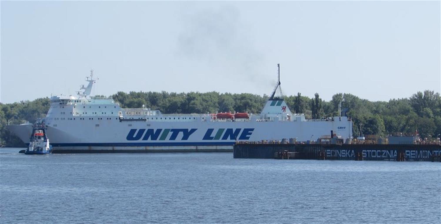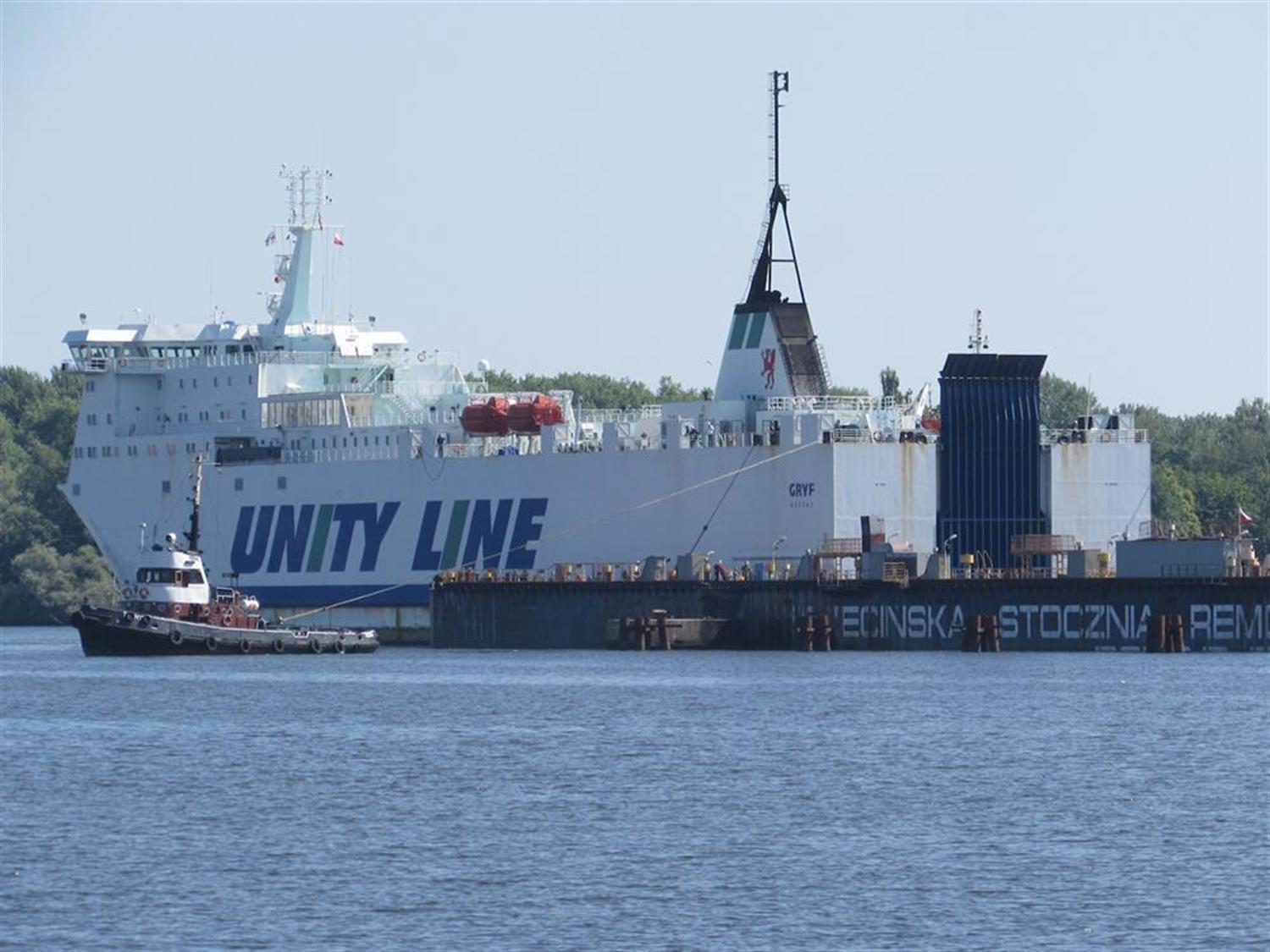 Z kolei prom „Gryf”, kursujący w barwach Unity Line (spółki z Grupy PŻM) na trasie Świnoujście - Trelleborg, pojawił się w Szczecinie w niedzielę (23 czerwca). Trafił do największego doku - nr 5 - Morskiej Stoczni Remontowej „Gryfia”. Do 8 lipca będzie wyłączony z eksploatacji, przechodząc okresowy remont stoczniowy.