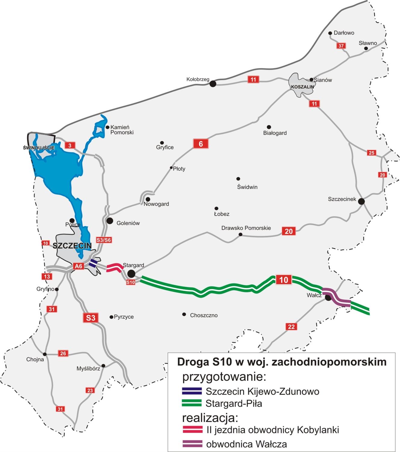 Wspomniane fragmenty S10 są co prawda na liście inwestycji do realizacji, nie mają one jednak ciągle gwarancji finansowania. „Dziesiątka” to ostatnia droga ekspresowa w województwie zachodniopomorskim, która nie ma jeszcze decyzji środowiskowej, ciągle więc nie ma wyznaczonego ostatecznego przebiegu.