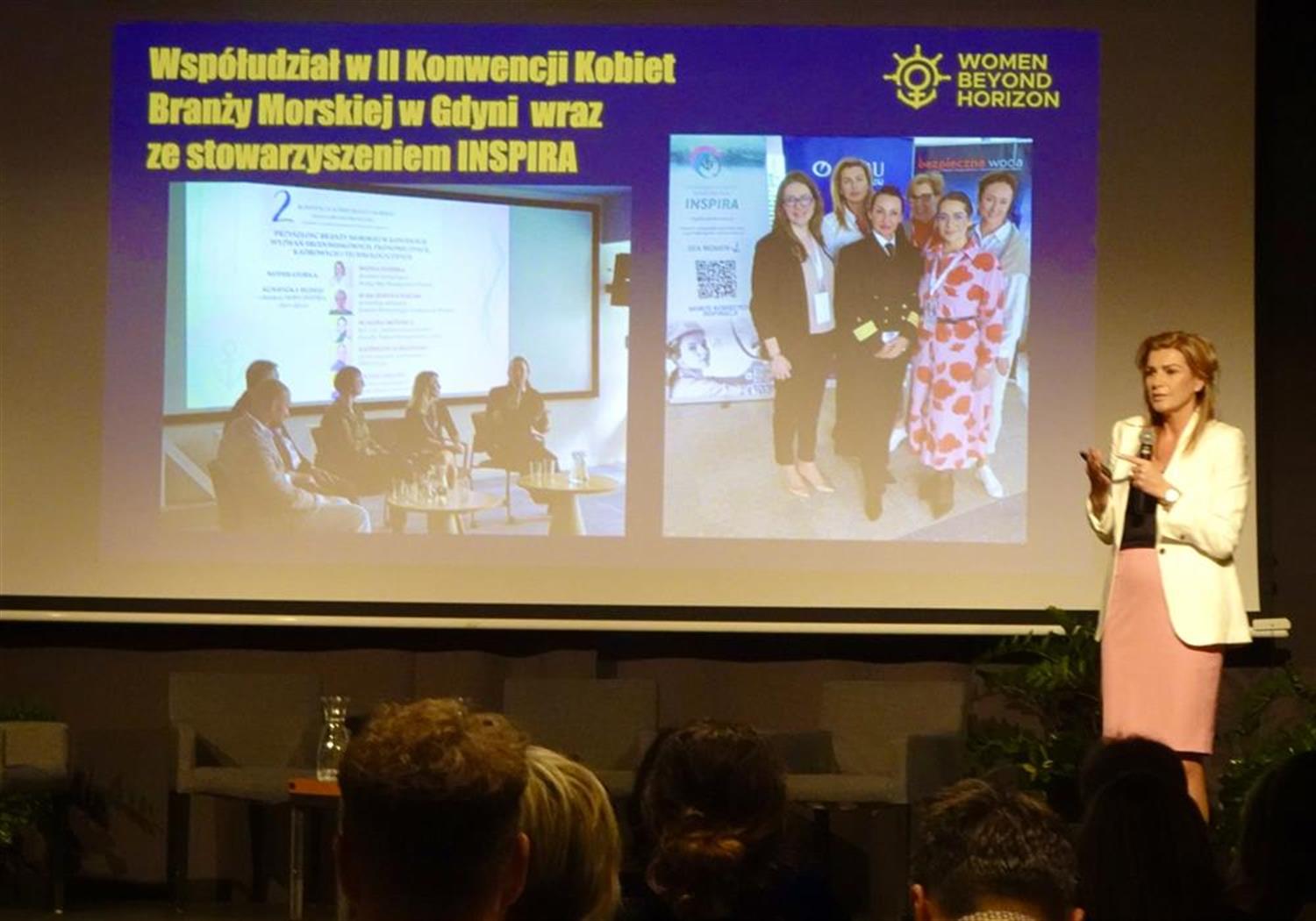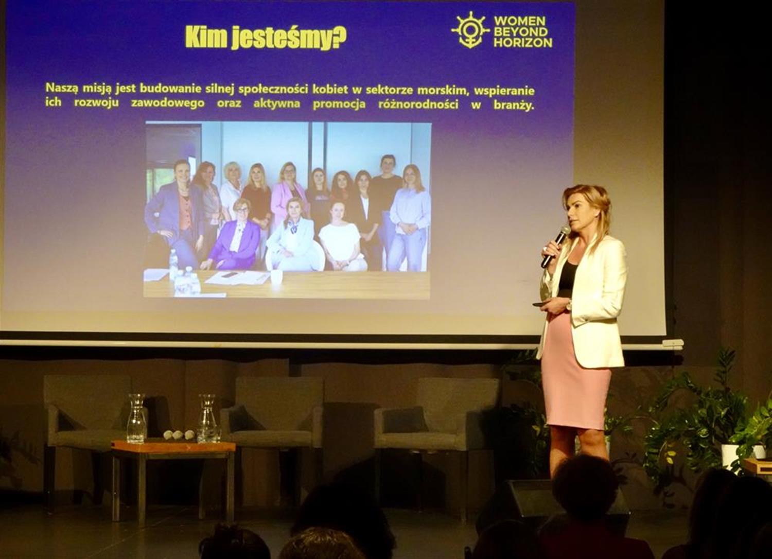 Prezes stowarzyszenia Aleksandra Turbaczewska, która na co dzień jest pełnomocnikiem dyrektora naczelnego Polskiej Żeglugi Morskiej, na początku zaprezentowała tę młodą organizację, przybliżyła, jakie przyświecają jej cele i co tworzące ją panie w ciągu zaledwie trzech miesięcy już zdziałały.