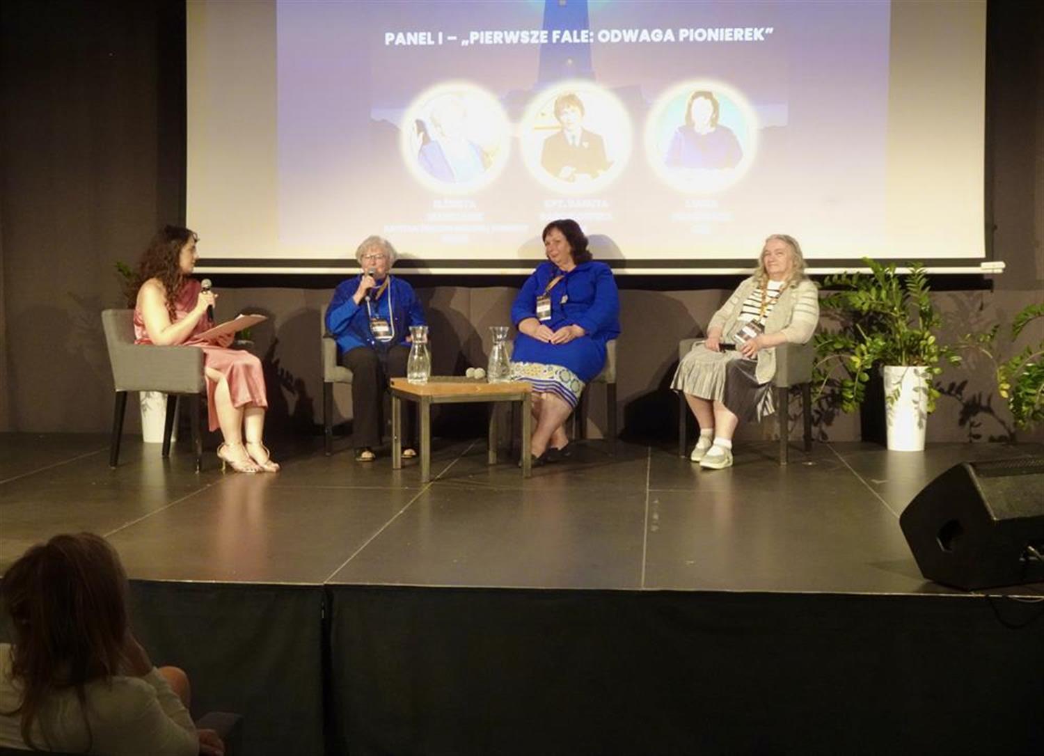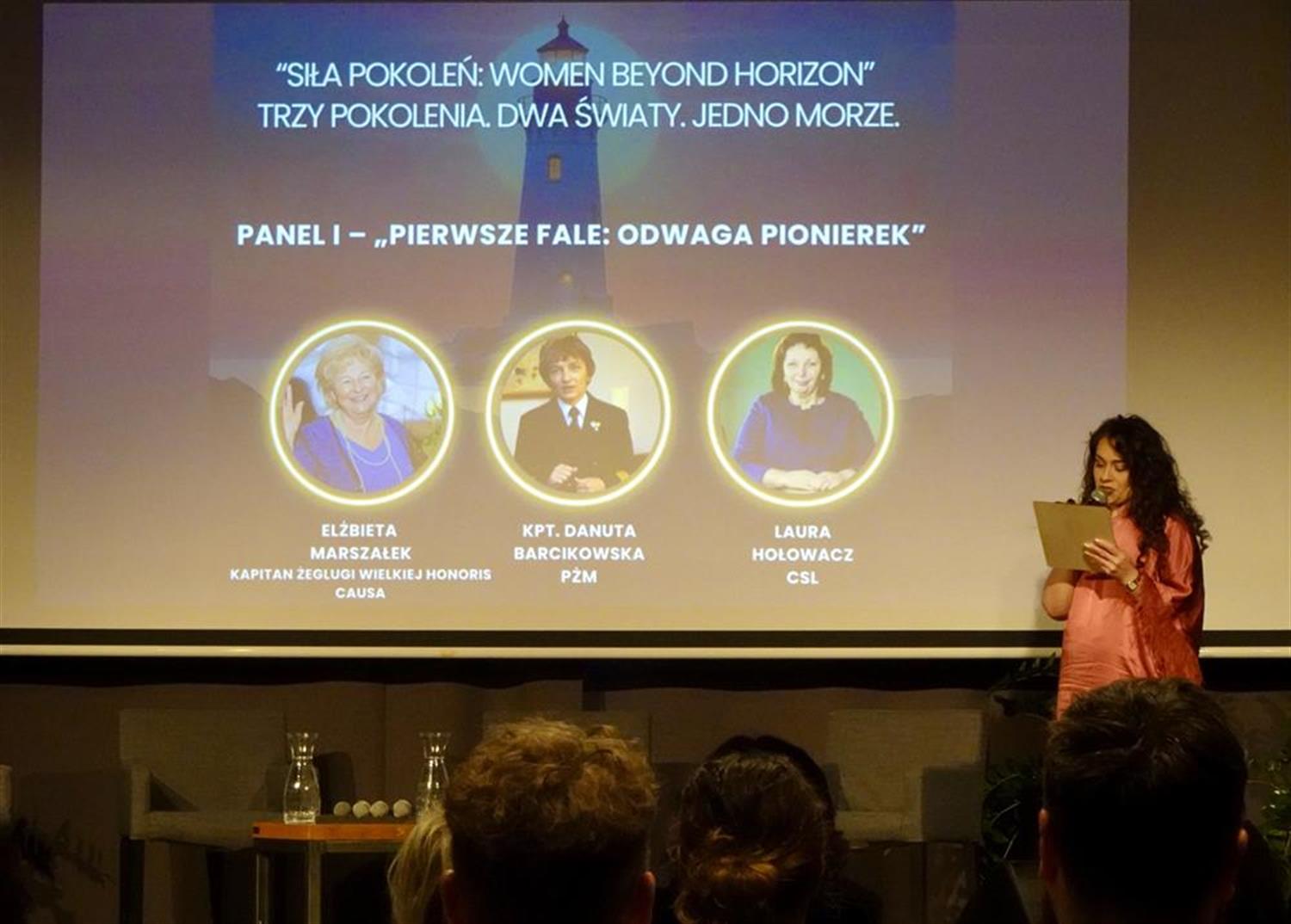 Pierwszy panel dyskusyjny pt. „Pierwsze fale: odwaga pionierek” poprowadziła Rana El Banna, a jej rozmówczyniami były kobiety, które przecierały szlaki w branży morskiej: wieloletnia działaczka Ligi Morskiej i Rzecznej, twórczyni i była rektor Wyższej Szkoły Ekonomiczno-Turystycznej, matka chrzestna kilku statków PŻM, inicjatorka Flisu Odrzańskiego Elżbieta Marszałek, prezes Grupy CSL Laura Hołowacz oraz kapitan żeglugi wielkiej Danuta Barcikowska.