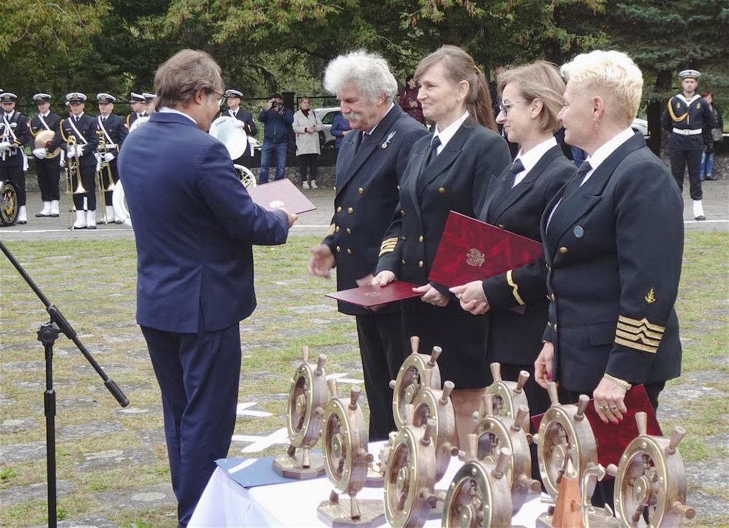 W sobotniej uroczystości wzięli udział przedstawiciele przedsiębiorstw i instytucji współpracujących ze szkołą, w tym Zarządu Morskich Portów Szczecin i Świnoujście, Polskiej Żeglugi Morskiej, Żeglugi Świnoujskiej, Klastra Morskiego Pomorza Zachodniego, 8. Flotylli Obrony Wybrzeża i innych służb mundurowych oraz rodzice uczniów. Czworo nauczycieli ZSM wyróżniono nagrodą ministra infrastruktury z okazji zbliżającego się Dnia Edukacji Narodowej. Osoby i instytucje wspierające szkołę uhonorowano pamiątkowymi statuetkami, wykonanymi przez uczniów. Muzyczną oprawę wydarzenia zapewniła Orkiestra Wojskowa w Świnoujściu. ©℗