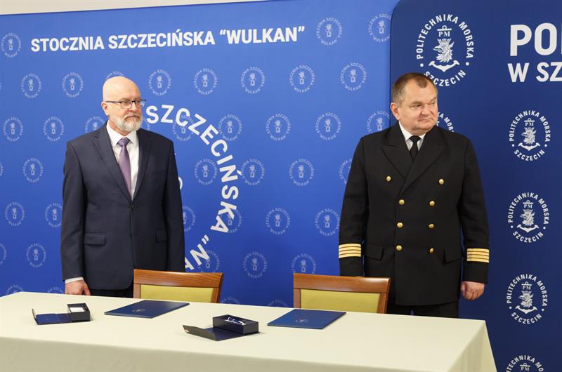 Politechnika Morska w Szczecinie i Stocznia Szczecińska „Wulkan” chcą współpracować, co przypieczętowały listem intencyjnym w tej sprawie. Podpisali go w piątek (21 lipca) w Sali Tradycji morskiej uczelni: prof. Wojciech Ślączka – rektor PS i Marek Opowicz, prezes stoczniowej spółki.