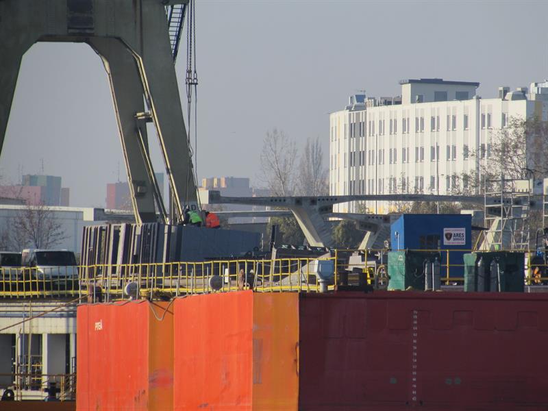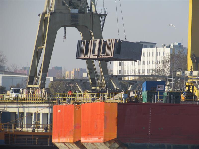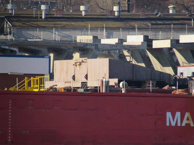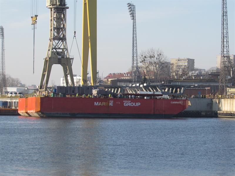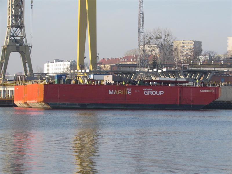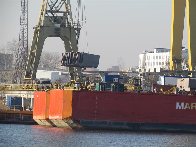 Pierwsze gotowe elementy przeładowano w sobotę z placu ośrodka pochylniowego Wulkan na ponton „Carrier 7”, którego armatorem jest szczecińska spółka Marine Crane. Na jego pokładzie popłyną do Niemiec.