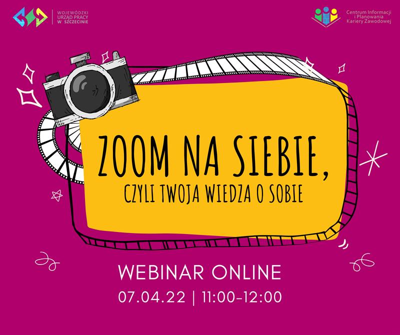 Webinar „Zoom na siebie, czyli Twoja wiedza o sobie”, odbędzie się w czwartek 7 kwietnia 2022 r. o godzinie 11 i potrwa godzinę.
