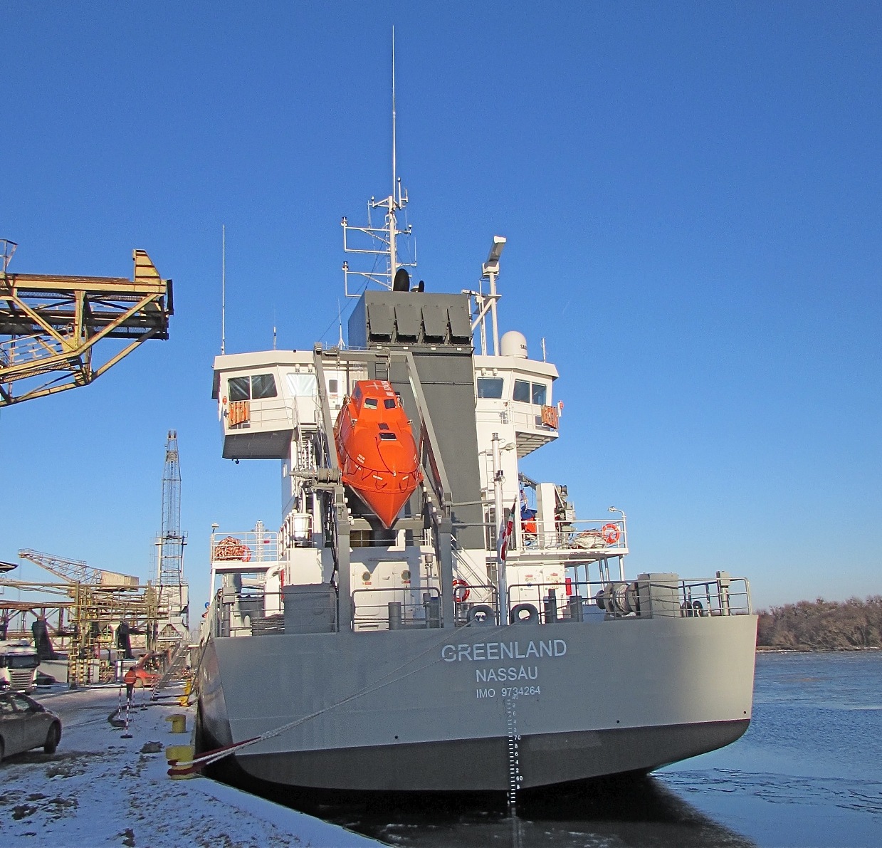 Na zdjęciu: Cementowiec „Greenland” był pierwszym statkiem, na którym przeprowadzono operację bunkrowania LNG w rostockim porcie. Na zdjęciu – podczas styczniowego zawinięcia w Szczecinie.