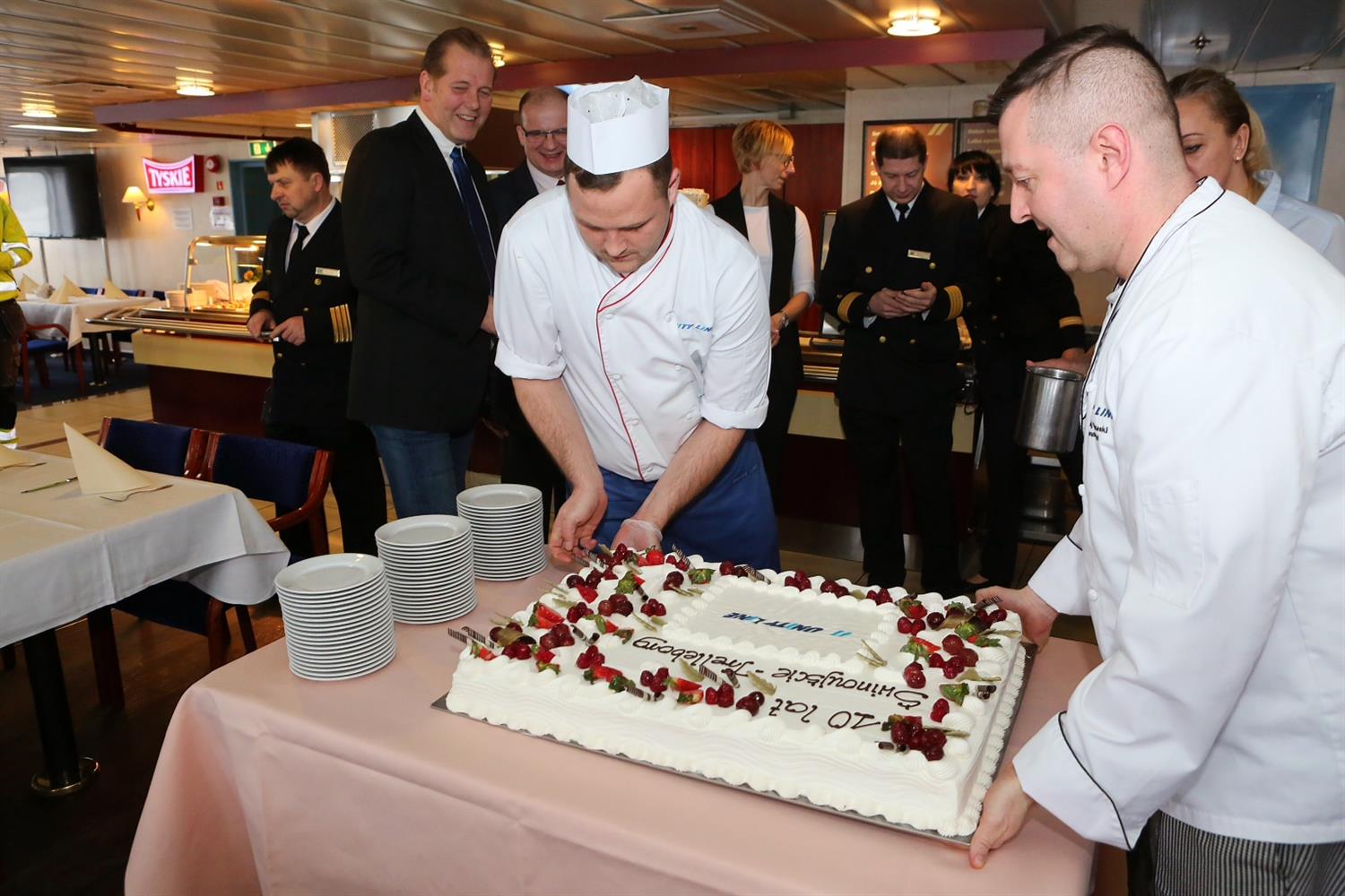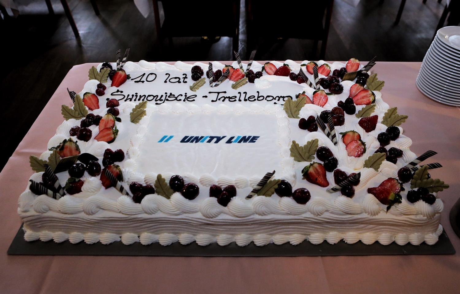 Okolicznościowy tort, drewniane koło sterowe i krzepiące przemówienia złożyły się na obchody 10-lecia linii promowej Świnoujście-Trelleborg. Świętował operator Unity Line (z grupy Polskiej Żeglugi Morskiej), którego trzy jednostki – „Gryf”, „Galileusz” i „Wolin” – kursują na tej trasie.