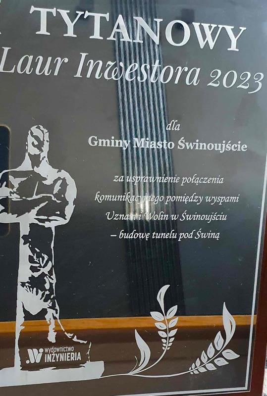 Tytanowy Laur – prestiżowe wyróżnienie branży inżynieryjnej – przyznano inwestorowi tunelu Gminie Miasto Świnoujście.