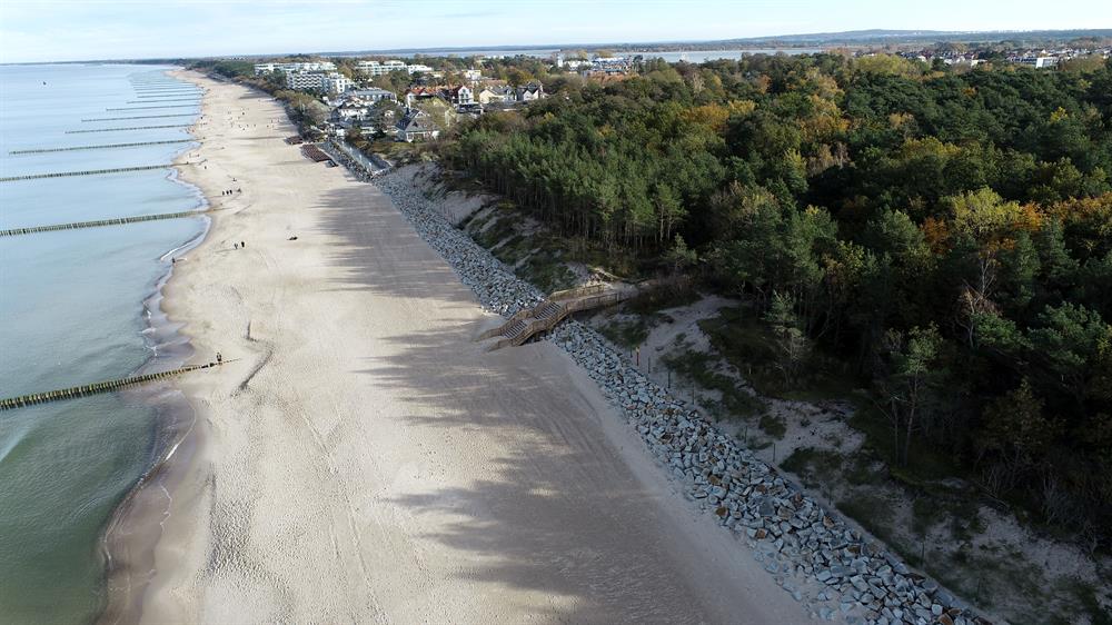 Dzięki niej nie tylko poszerzono plażę, ale przede wszystkim zabezpieczono brzeg morski przed niszczycielskim działaniem sztormów.