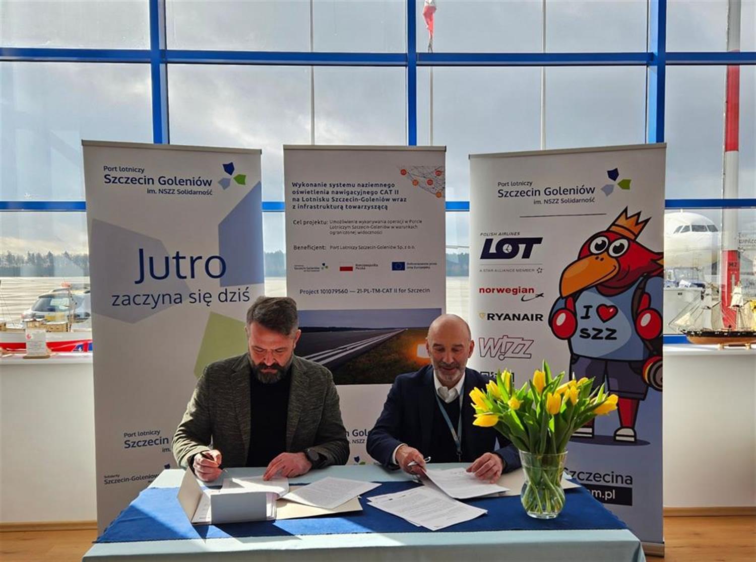 Spółka Port Lotniczy Szczecin – Goleniów 21 bm. podpisała wart prawie 9 400 000 euro kontrakt dotyczący „Wykonania systemu świetlnych pomocy nawigacyjnych CAT II na lotnisku Szczecin – Goleniów, wraz z infrastrukturą towarzyszącą”. Generalnym wykonawcą jest Elektrotim SA z Wrocławia. Nowy system umożliwi lądowanie w trudniejszych warunkach pogodowych.