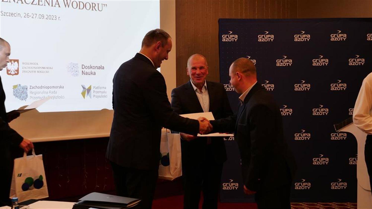 Podczas konferencji słuchacze Akademii Wodorowej zaprezentowali zrealizowane projekty, stanowiące podstawę do wyłonienia kandydatów na płatne staże zawodowe. Projekty: „Rozproszony system sterowania produkcją zielonego wodoru” opracowany przez Mateusza Marczewskiego oraz „Zielony amoniak” przygotowany przez Marka Góreckiego, Michała Piszcza oraz Jakuba Sakowskiego – to dwa spośród dziewięciu, które zajęły ex aequo pierwsze miejsce, a ich autorzy otrzymali zaproszenia do odbycia staży w Grupie Azoty Police. Z możliwości zdobycia doświadczenia w polickiej spółce będą mogli skorzystać także studenci, których projekty zajęły drugie i trzecie miejsce. Na wszystkich słuchaczy Akademii Wodorowej czeka jeszcze wyjazd studyjny do duńskiej firmy GreenLab, będącej zielonym parkiem energetycznym o obiegu zamkniętym i jednocześnie tamtejszym krajowym ośrodkiem badawczym.