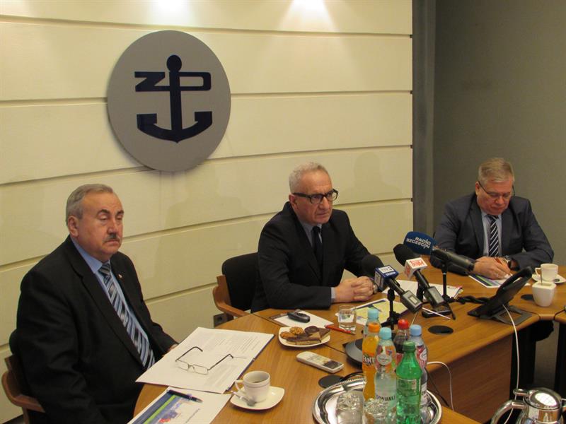 Na zdjęciu: Miniony rok w portach Szczecin i Świnoujście podsumowali przedstawiciele zarządu ZMPSiŚ (od lewej): wiceprezes Kazimierz Drzazga, prezes Krzysztof Urbaś i wiceprezes Jacek Cichocki.