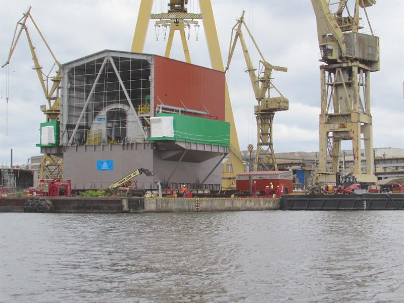 Policka spółka Stalkon zbudowała kolejną ogromną konstrukcję, złożoną z kilku elementów. To wywrotnica wagonowa wraz z halą i przedłużeniem oraz całym osprzętem. Razem wszystko waży ponad tysiąc ton. Konstrukcję przeniesiono z nabrzeża Drzetowskiego w Szczecinie, gdzie była montowana, na specjalny ponton. We wtorek (9 lipca) rano zestaw transportowy, na który składały się także dwa holowniki, odpłynął.