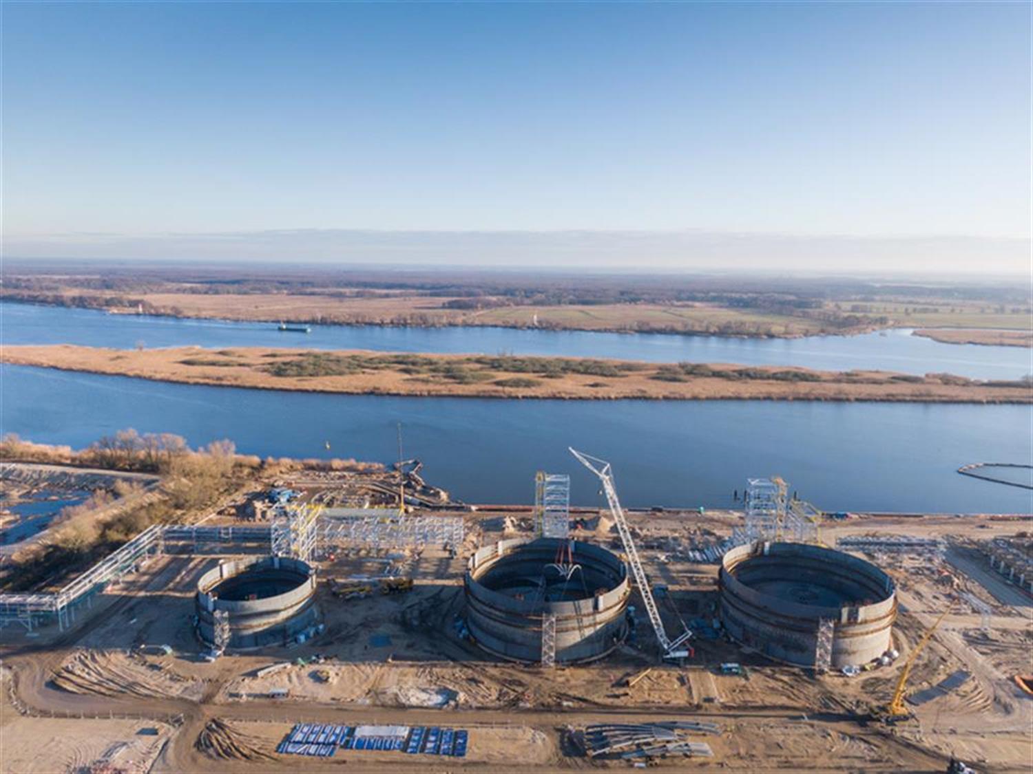 Na obszarze przyszłego terminalu przeładunkowo-magazynowego kontynuowane są prace montażowe płaszcza zewnętrznego dwóch zbiorników propanu oraz zbiornika etylenu, a także konstrukcji wsporczych dachów zbiorników propanu. Równolegle trwają prace hydrotechniczne w części morskiej inwestycji: budowa nabrzeża oraz pogłębianie części toru wodnego wchodzącego w zakres projektu Polimery Police.