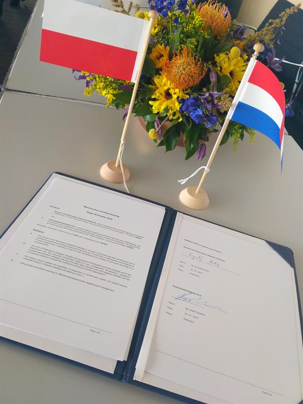 Zarządy portów Szczecin i Świnoujście oraz holenderskiego portu Rotterdam w środę (30 października) podpisały porozumienie o współpracy. Inicjatywa ma charakter niekomercyjny, a dotyczy współpracy w takich obszarach jak żegluga śródlądowa oraz bliskiego zasięgu. Dokument podpisano w Rotterdamie, w obecności prezydenta RP Andrzeja Dudy, przebywającego z oficjalną wizytą w Królestwie Niderlandów.