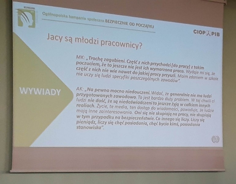 Młody pracownik to dziś człowiek zagubiony, nie do końca wiedzący, jakie ma oczekiwania, jakie cele, ale także nieświadomy zagrożeń, jakie niesie praca. Tej wiedzy nie rozjaśniają mu, niestety, przestarzałe metody mówienia o bezpieczeństwie na stanowisku - potrzeba nowych, najczęściej zwizualizowanych metod. O nich, a także o badaniach i ocenach naukowych oraz dobrych praktykach przedsiębiorców, którzy je z sukcesem wdrażają, dyskutowano na środowym (9 maja) seminarium zorganizowanym przez Okręgowy Inspektorat Pracy w Szczecinie.