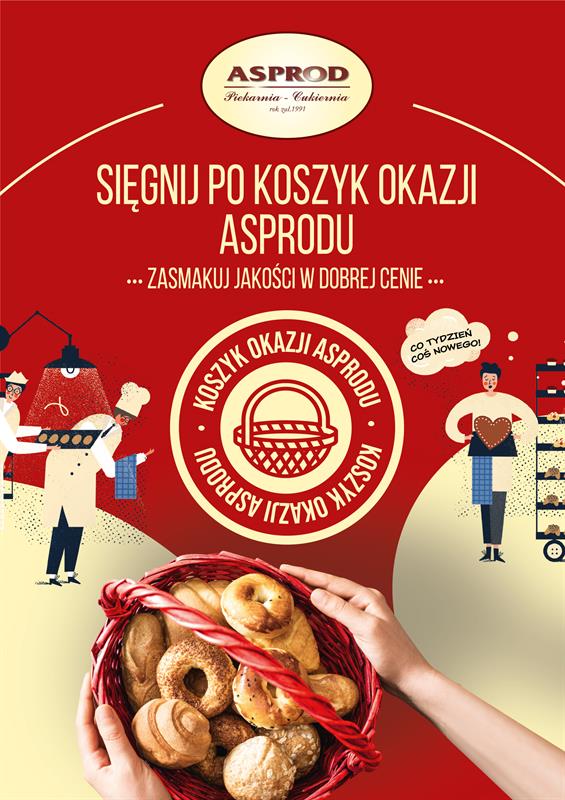 Sieć piekarni-cukierni Asprod wprowadza promocje na ceny swoich najpopularniejszych wyrobów. To niejedyne nowości, jakie marka przygotowała dla swoich klientów w ramach kampanii, której hasłem przewodnim jest „Koszyk okazji Asprodu”.