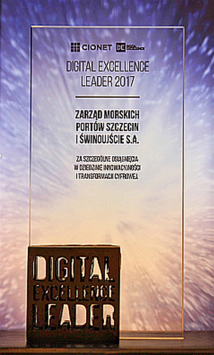 Spółka Zarząd Morskich Portów Szczecin i Świnoujście zdobyła nagrodę Digital Excellence Awards 2017 za „Szczególne osiągnięcia w dziedzinie innowacyjności i transformacji cyfrowej”. Przedstawiciel ZMPSiŚ odebrał ją podczas specjalnej gali, która się odbyła w Warszawie.