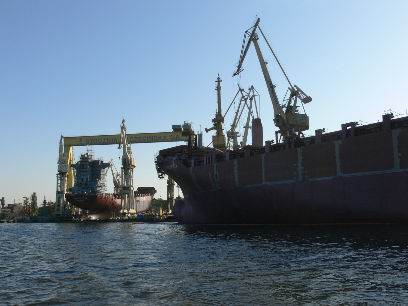 Na zdjęciu: Tak przy stoczniowych nabrzeżach i na pochylniach było jeszcze w maju 2008 roku. Czy obecny rząd pomoże przedsiębiorcom w odrodzeniu przemysłu stoczniowego?
