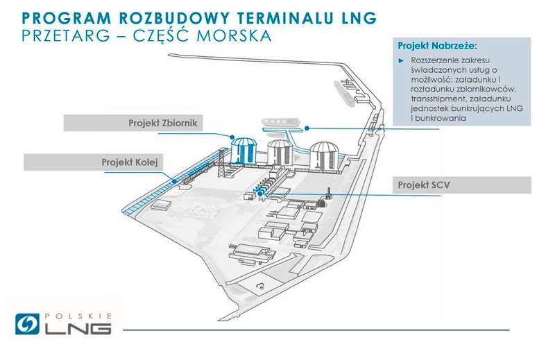 Pierwsza decyzja dotyczy przedsięwzięcia, które obejmuje budowę trzeciego zbiornika LNG (o pojemności ok. 180 tys. m sześc.) wraz z instalacjami i połączeniami do dwóch już istniejących zbiorników LNG, a także lądowego systemu załadunku LNG na kolej.