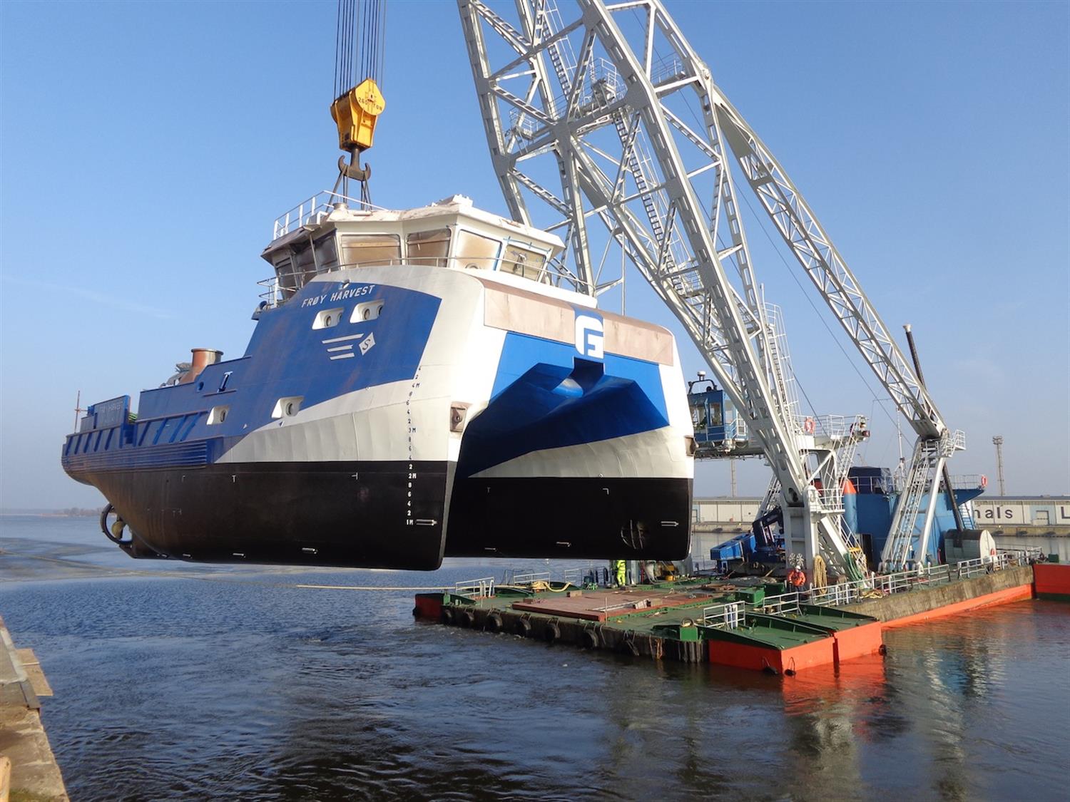 Jednostka nosi nazwę „Froy Harvest”. Jest niewielka: ma 25 m długości i 13 m szerokości. Ma też niedużą nośność, więc do zwodowania wystarczyło użycie dźwigu pływającego „Lodbrok”, należącego do szczecińskiej spółki Marine Crane.