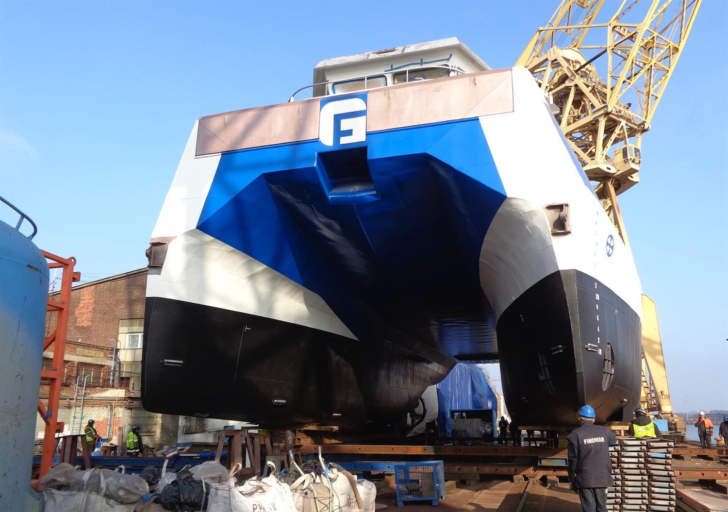 W szczecińskiej firmie stoczniowej Finomar zwodowano w miniony poniedziałek (13 lutego) kolejną jednostkę. To pierwszy z dwóch zakontraktowanych katamaranów do obsługi farm łososiowych w Norwegii.