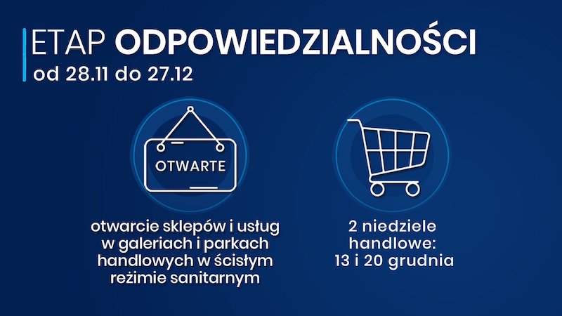 Premier w sobotę rano przedstawił plan - nazwany "100 dni solidarności" - na dalsze etapy walki z koronawirusem. Mateusz Morawiecki zapowiedział m.in. że od soboty (28 listopada) sektor handlowy (w tym galerie) zostanie otwarty. Zamknięte do świąt Bożego Narodzenia nadal pozostaną szkoły. Zaś kina, teatry, siłownie i restauracje będą nieczynne jeszcze przynajmniej do 27 grudnia.