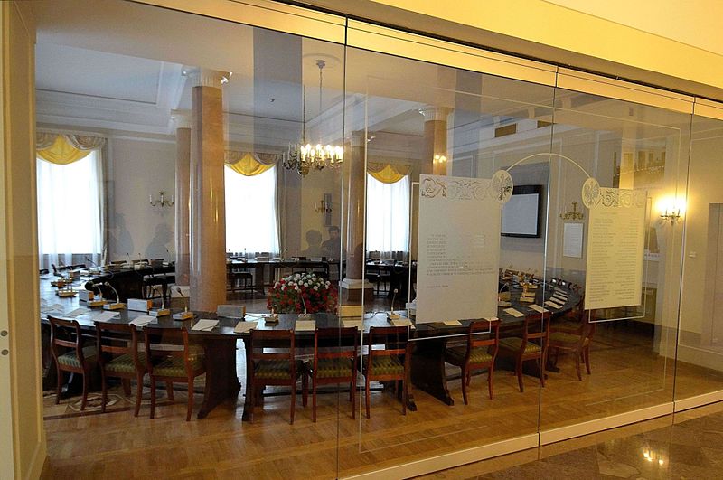 Na zdjęciu: Okrągły stół eksponowany w Pałacu Prezydenckim w Warszawie. Warto zwrócić uwagę, iż przy słynnym już stole z Henrykowa uczestnicy rozmów spotkali się tylko dwukrotnie, na inaugurację i zakończenie obrad.