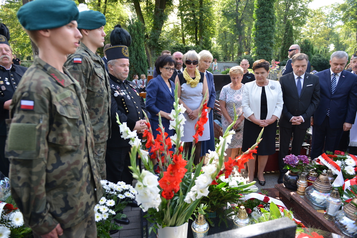 Na zdjęciu: Premier Beata Szydło złożyła kwiaty oraz zapaliła znicze na grobach ofiar Lubina'82. Premier towarzyszył szef Solidarności Piotr Duda.