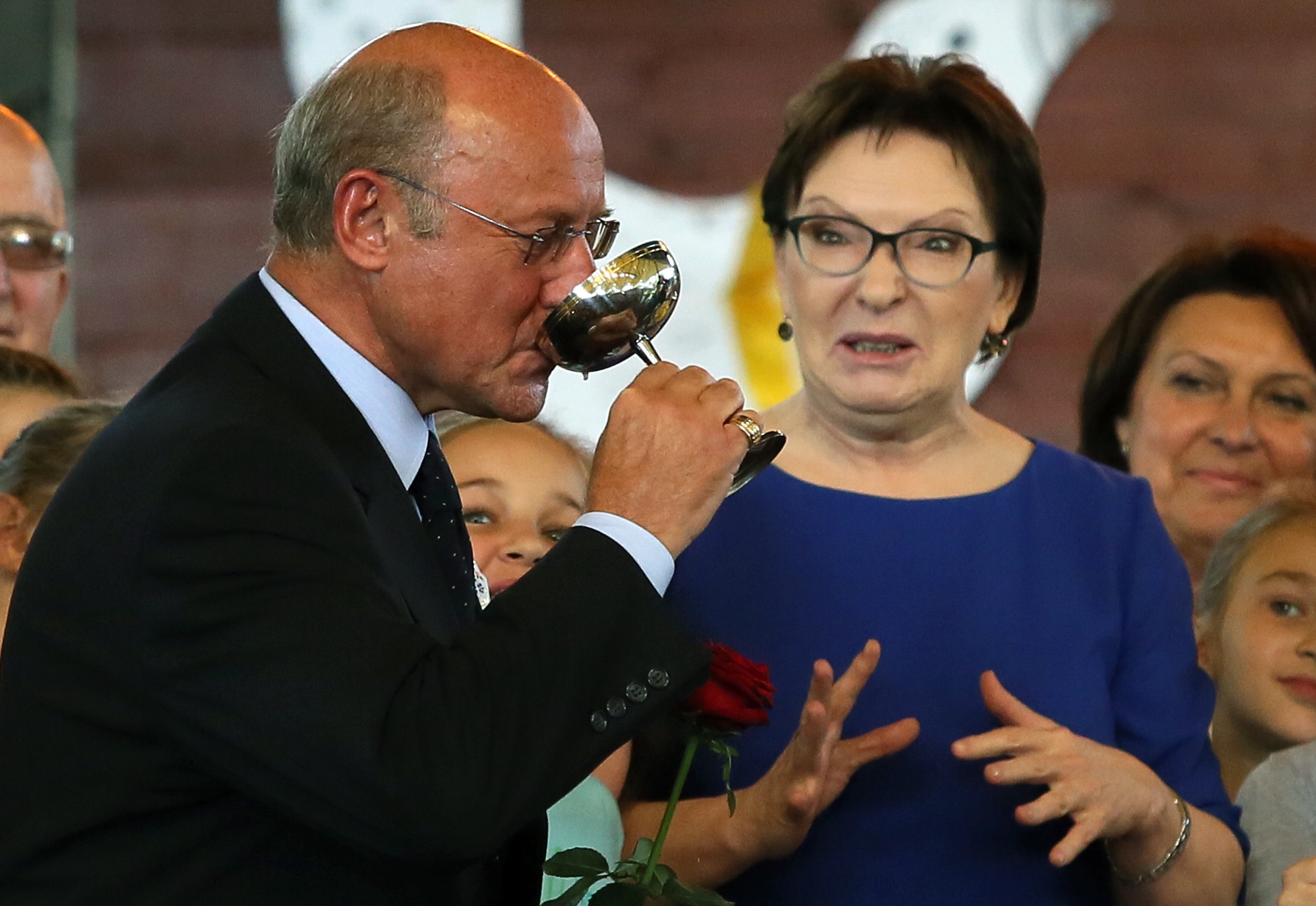 Na zdjęciu: Odznaczony musiał bez skrzywienia się wypić sok z cytryny.