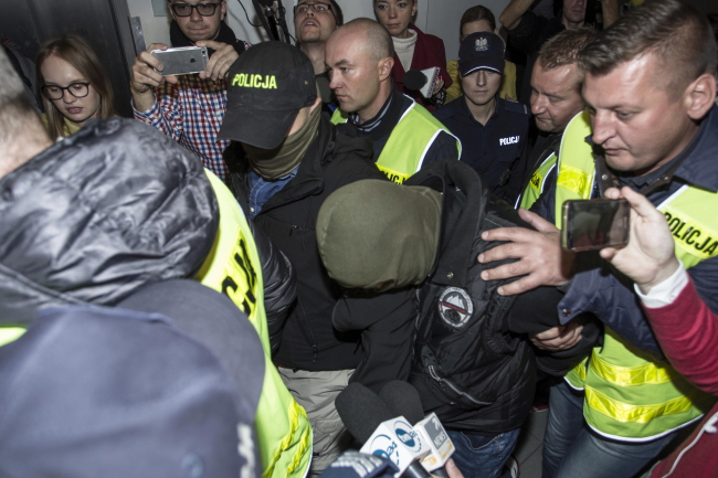Na zdjęciu: Norbert B. doprowadzany na salę Sądu Okręgowego we Wrocławiu