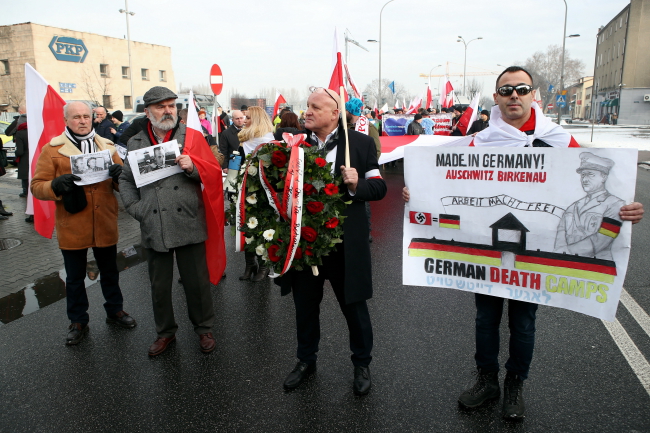 Przed oficjalnymi uroczystościami około dwustu narodowców przemaszerowało od oświęcimskiego dworca kolejowego do byłego obozu Auschwitz I. Przeciwko nim protestowało kilka osób z transparentem "Faszyzm stop!" i flagą Izraela. Przedstawiciel jednego ze środowisk narodowych Piotr Rybak, będący inicjatorem marszu, mówił, że "patrioci polscy, narodowcy, nacjonaliści" upomnieli się o najwyższe wartości: Boga, Honor, Ojczyznę. Według krakowskiej "Gazety Wyborczej", Rybak miał pytać uczestników marszu: "Czy my jesteśmy krajem niepodległym?"; "Czas walczyć z żydostwem i uwolnić od niego Polskę! Gdzie są rządzący tym krajem? Przy korycie! I to trzeba zmienić" – miał wykrzykiwać Rybak.