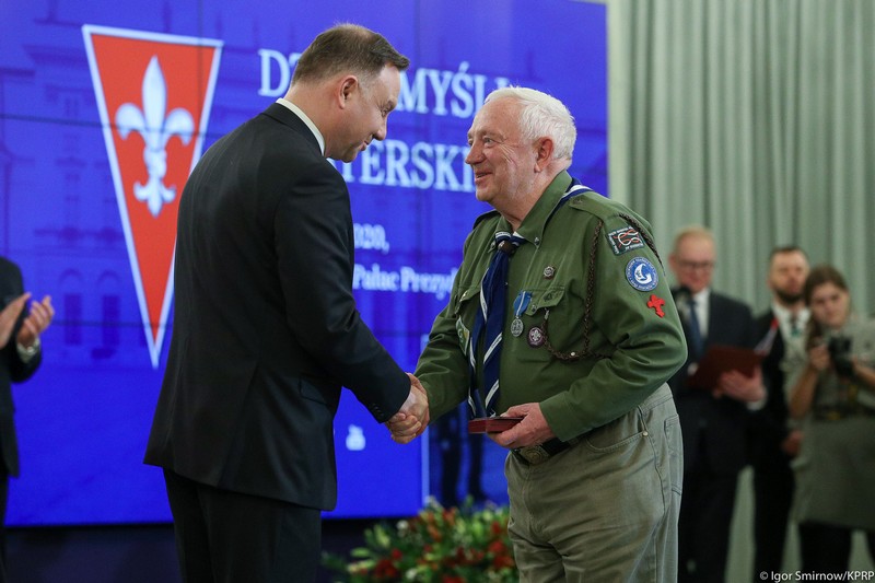 Andrzej Duda w związku z obchodami Dnia Myśli Braterskiej uhonorował Medalami Stulecia Odzyskanej Niepodległości działaczy harcerskich.