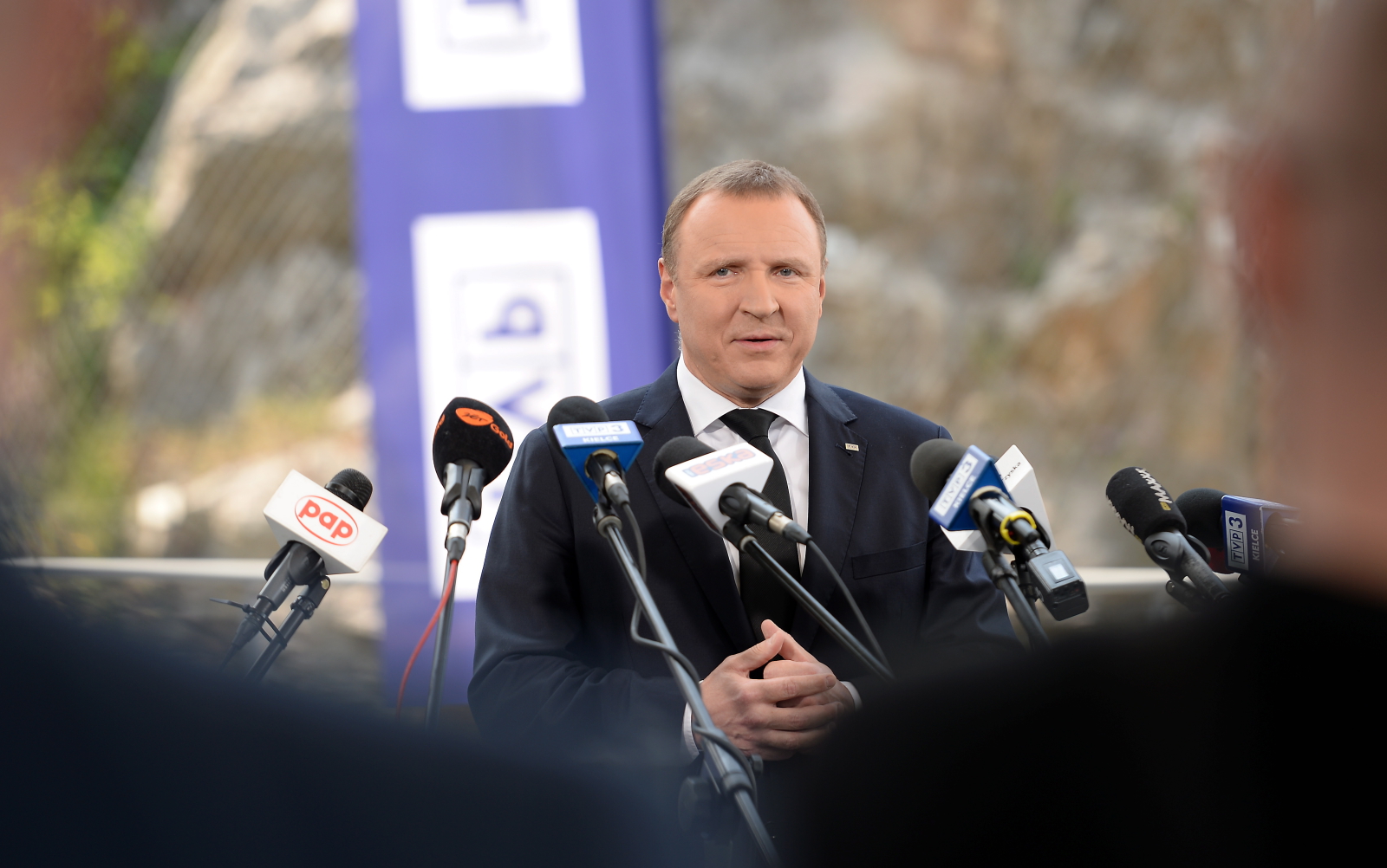 Na zdjęciu: Prezes TVP Jacek Kurski podczas konferencji prasowej w amfiteatrze "Kadzielnia" w Kielcach, który uznał za "jeden z najpiękniejszych w Europie".