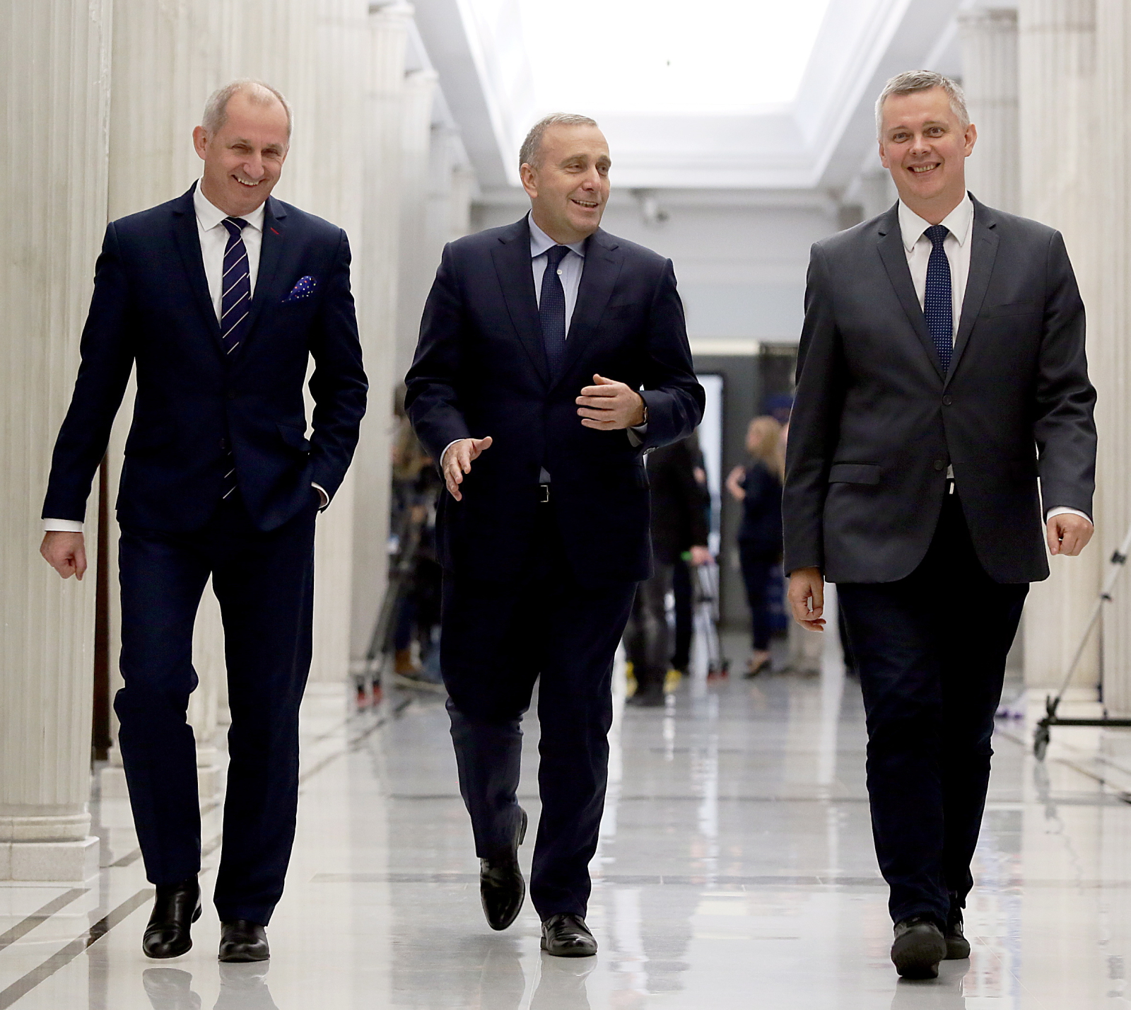 Na zdjęciu: Przewodniczący Platformy Obywatelskiej Grzegorz Schetyna (w środku), wiceprzewodniczący PO Tomasz Siemoniak (z prawej) oraz szef KP PO Sławomir Neumann (z lewej)