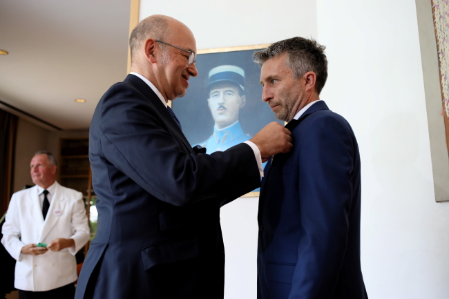 Himalaista Piotr Tomala odebrał w Ambasadzie Francji w Warszawie najwyższe odznaczenie nadawane przez to państwo - Legię Honorową. Otrzymał ją dekretem prezydenta Emmanuela Macrona jako członek zespołu, który przeprowadził akcję ratunkową na Nanga Parbat w styczniu 2018.