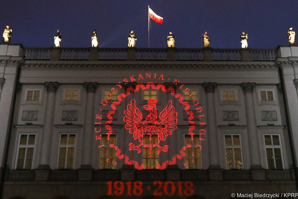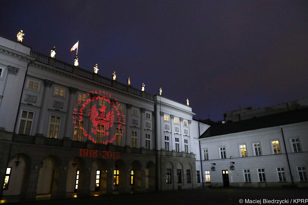 Rozpoczynający się r. 2018 jest rokiem obchodów setnej rocznicy odzyskania przez Polskę niepodległości. Z tej okazji 1 stycznia po zmroku na fasadzie Pałacu Prezydenckiego oraz Belwederu w Warszawie pojawiły się okolicznościowe iluminacje.