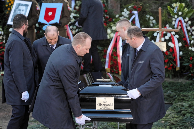 Po godz. 16 w sobotę trumna z ciałem byłego premiera Jana Olszewskiego została złożona do grobu na cmentarzu na Wojskowych Powązkach. W pogrzebie uczestniczyli m.in. przedstawiciele najwyższych władz, rodzina i przyjaciele zmarłego, a także tłumy warszawiaków.
